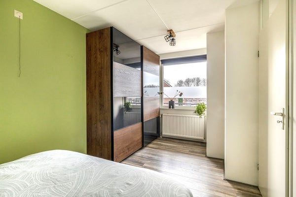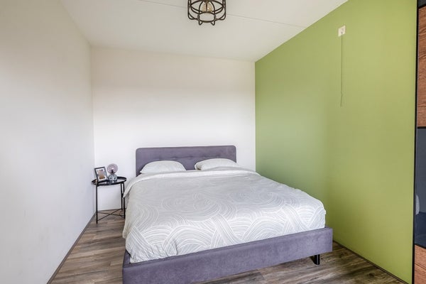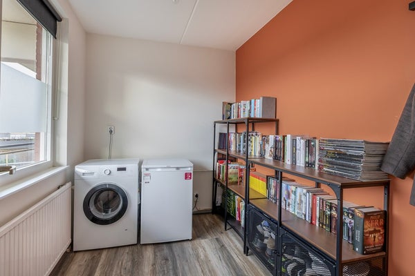 Het appartement heeft twee slaapkamers, beide aan de voorzijde en beide verrassend ruim. De grootste slaapkamer meet circa 13 m², dus plek zat voor een groot bed en een flinke kast. De tweede kamer? Die is ideaal als werkplek, logeerkamer of juist hobbyruimte. Ook zit hier de aansluiting voor de wasmachine en heb je ruimte voor een droger of een losse vriezer. Slim bedacht toch?