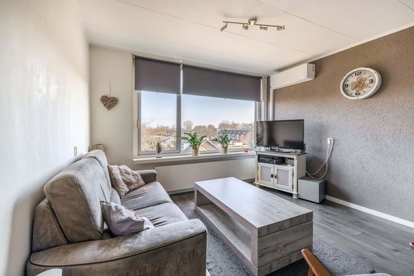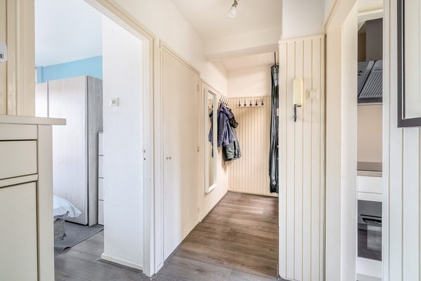 Je komt bij dit appartement binnen in een gang met van hieruit toegang tot diverse ruimtes. Links bevindt zich de meterkast (9 groepen) en daar tegenover is een inbouwkast aanwezig. Als je doorloopt kom je in de woonkamer. Deze is met een afmeting van 23,00m² prima van formaat en heerlijk licht door de aanwezigheid van een groot raam. De hier aanwezige airco zorgt voor koeling op warme dagen en heeft ook een verwarmingsmogelijkheid. Vanuit de woonkamer is de slaapkamer aan de achterzijde bereikbaar.