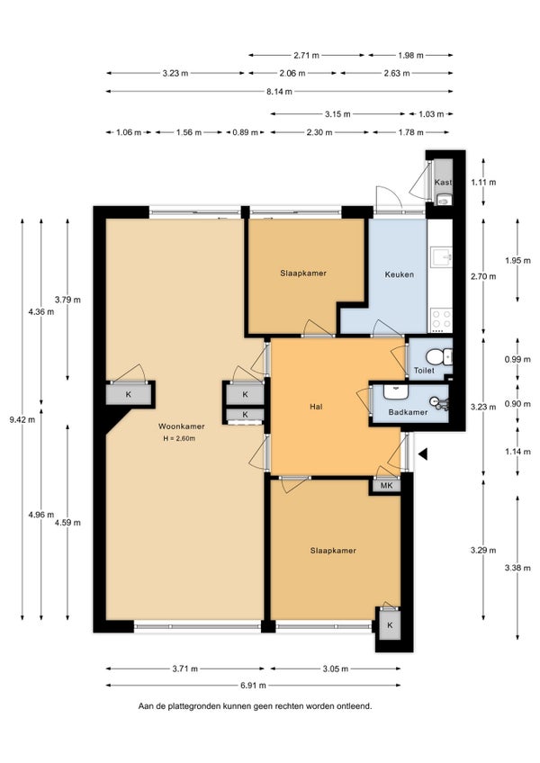 - De galerijflat heeft een woonoppervlakte van 71 m² en beschikt over 4 kamers, waarvan 2 slaapkamers;