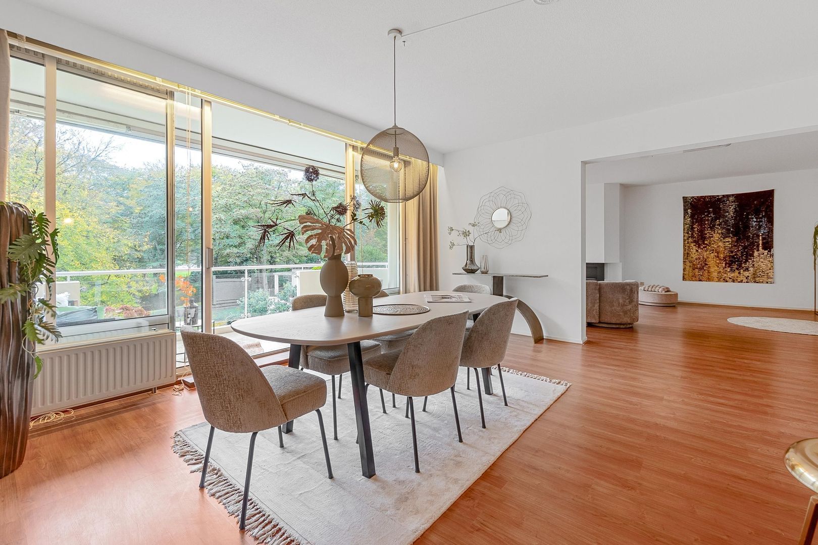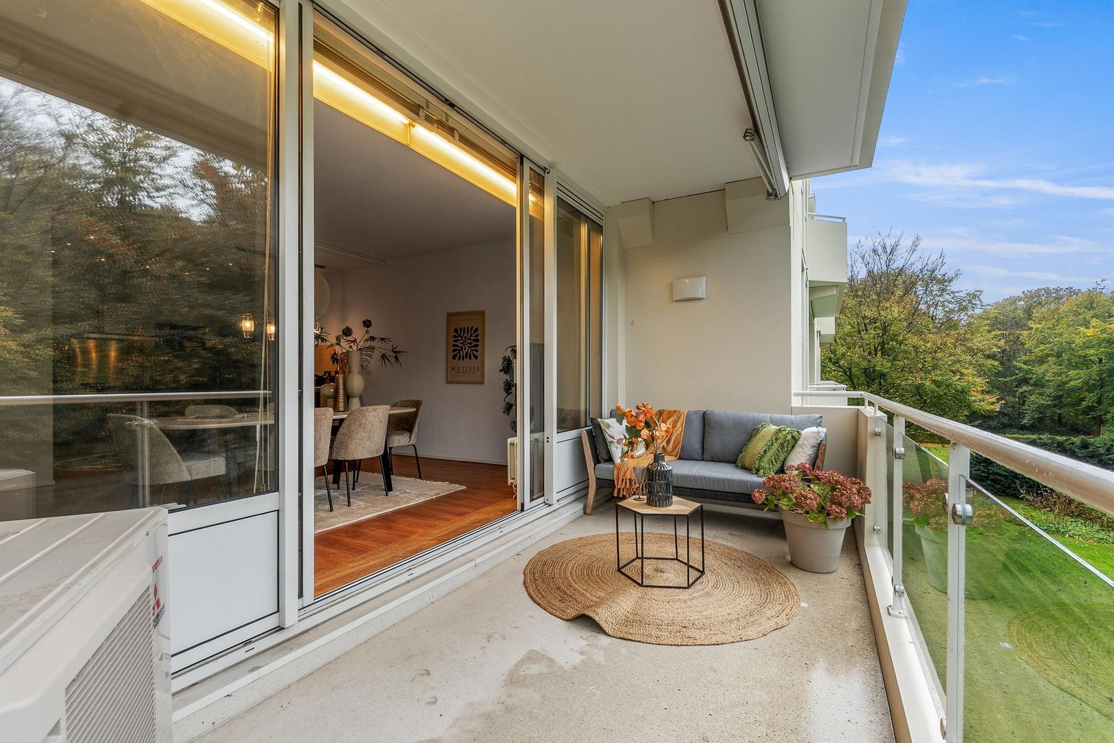 Droomt u van een woning op het fraaie landgoed Park Rust en Vreugd in Wassenaar? Dit royale appartement biedt een combinatie van comfort, privacy en een groene omgeving. U wordt wakker met uitzicht op oude bomen en kunt genieten van een kop koffie op uw ruime terras. De woonkamer is met een open keuken verbonden en het zonnige terras is op het zuidwesten gelegen. De hoofdslaapkamer beschikt over een inloopkast en een badkamer met regendouche, dubbele wastafel en infraroodsauna. Met 155 m² aan woonoppervlak en 3 kamers, biedt het appartement veel ruimte. Het complex heeft een eigen garage en is uitstekend onderhouden, met energielabel A. Op loopafstand vindt u het Wassenaar-dorp voor uw dagelijkse boodschappen. Dit appartement belooft rust en natuur dichtbij voorzieningen.