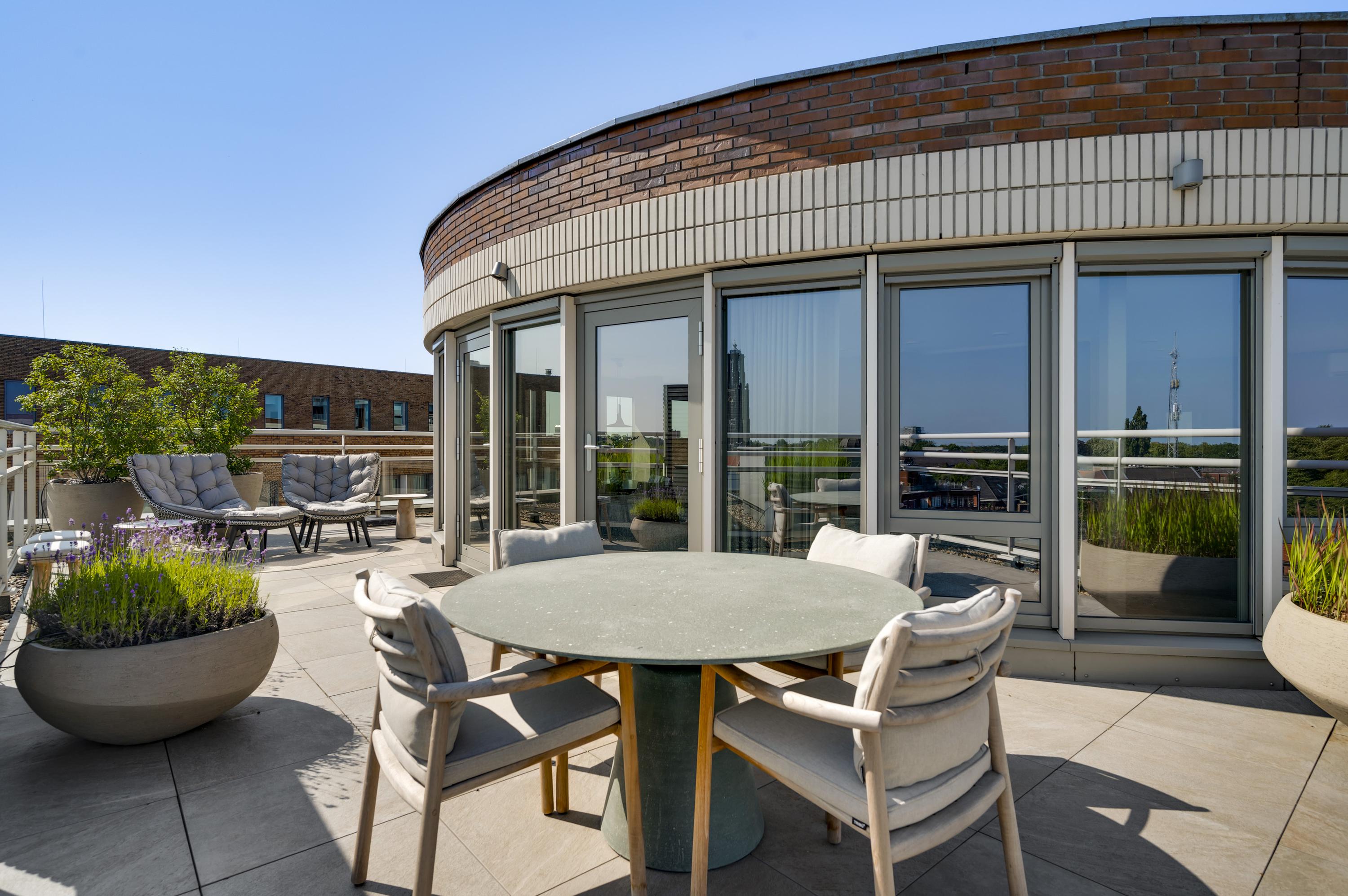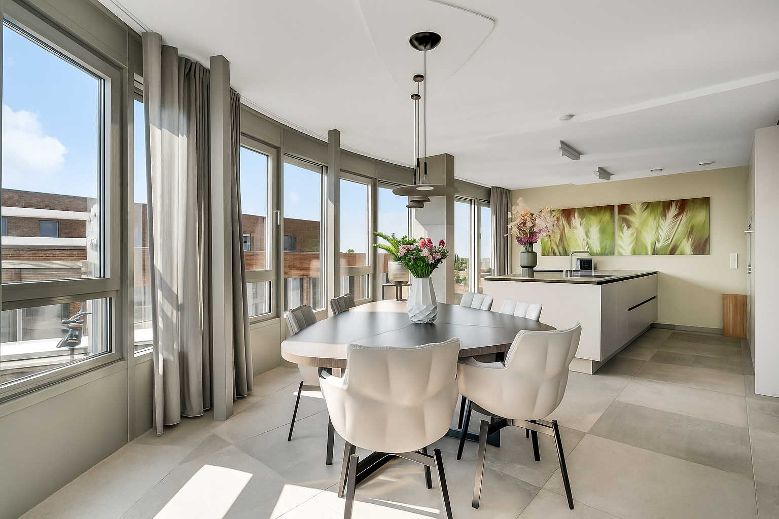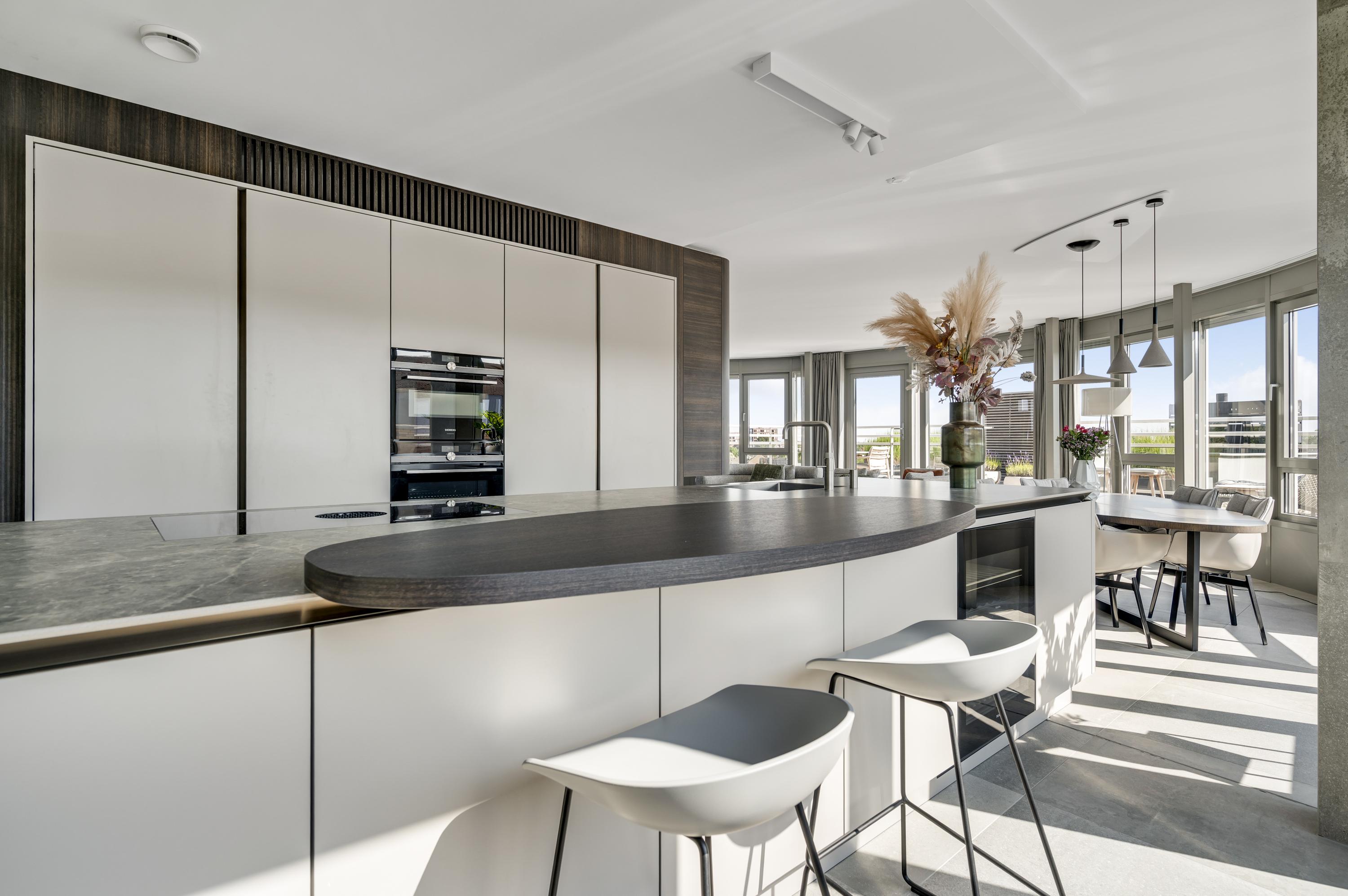 In het hart van Weert ligt dit unieke, stijlvolle penthouse in "La Cour Bleue". Met een woonoppervlakte van ca. 160 m² biedt het penthouse drie slaapkamers en een kleedkamer. De ruime woonkamer, een eyecatcher dankzij de designafwerking, sluit naadloos aan op de vernieuwde luxe keuken van 2024. Hier vindt u een kookeiland met hoogwaardige inbouwapparatuur. De complete badkamer is luxe uitgevoerd met een inloopdouche en ligbad. Een groot dakterras biedt prachtig uitzicht over de stad en is perfect om te ontspannen. U beschikt ook over twee eigen parkeerplaatsen in de parkeergarage, inclusief laadpunt voor elektrische voertuigen. Deze woning combineert luxe en comfort met een centrale ligging, nabij alle voorzieningen van het stadscentrum.