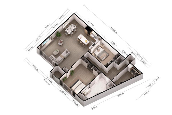 - De benedenwoning heeft een woonoppervlakte van 120 m² en beschikt over 3 kamers;