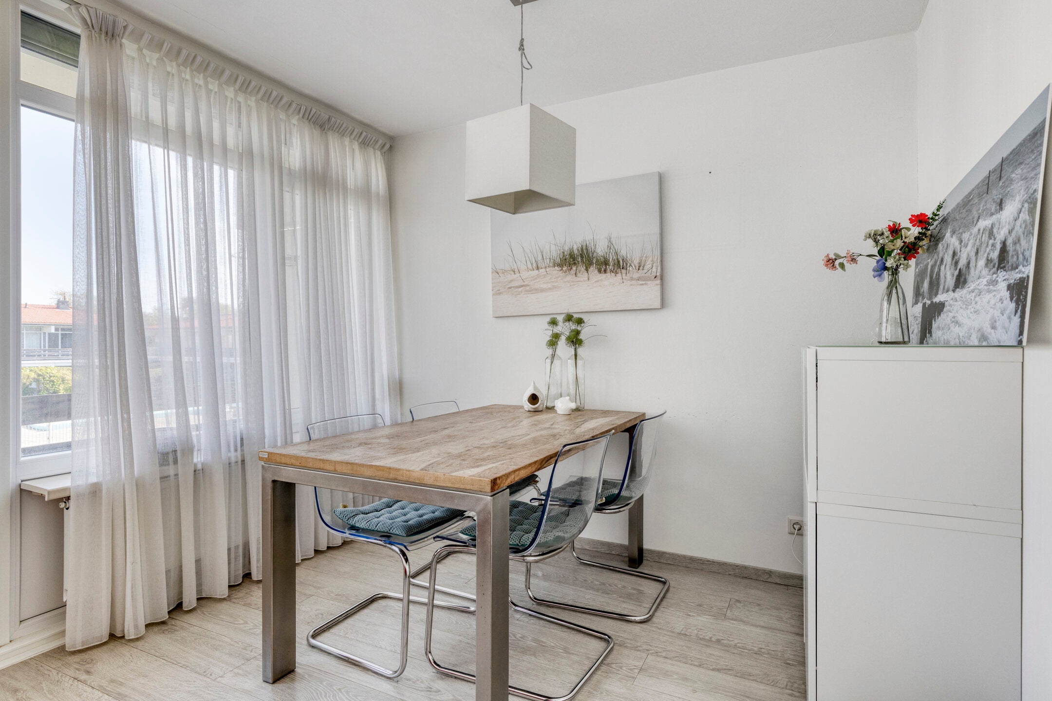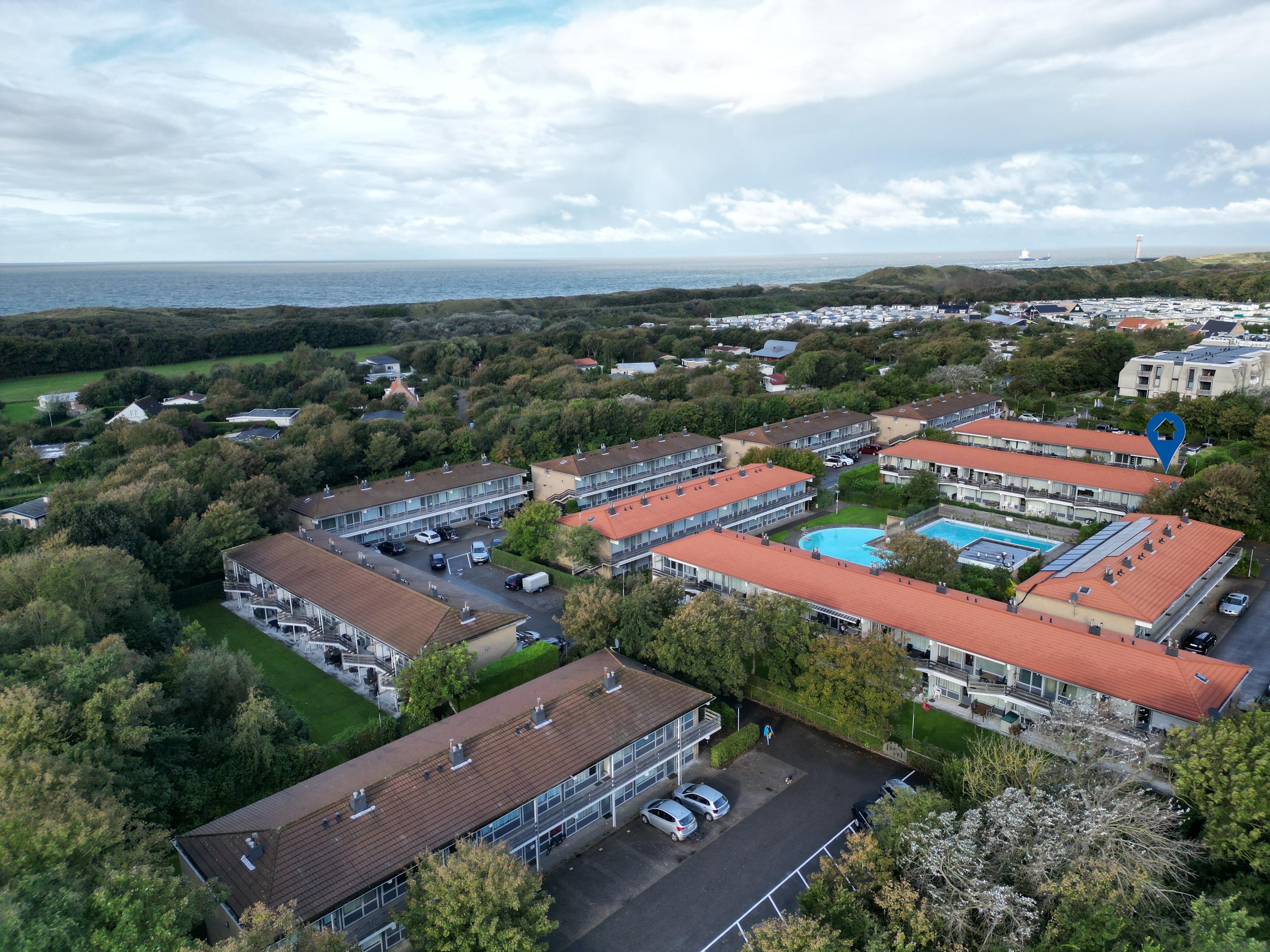 Duinweg 102 in Westkapelle is een perfect onderhouden hoekappartement met 2 slaapkamers op de 1e verdieping. Het appartement biedt uitzicht op groen en het zwembad en ligt op enkele minuten lopen van het strand, met een eigen parkeerplaats op een afsluitbaar terrein. De indeling omvat een hal met meterkast, een nette badkamer met inloopdouche, een lichte woonkamer met toegang tot het terras, en een open keuken met inbouwapparatuur. Het jaarlijkse VvE-bijdrage is € 1.850, inclusief onderhoud en gebruik van voorzieningen zoals een buitenzwembad en tennisbanen. Het appartement is in een recreatiegebied met mooie fietsroutes en is bestemd voor recreatief eigen gebruik of verhuur. Het ligt dicht bij het rustige Zuiderstrand en het dorpscentrum van Westkapelle.