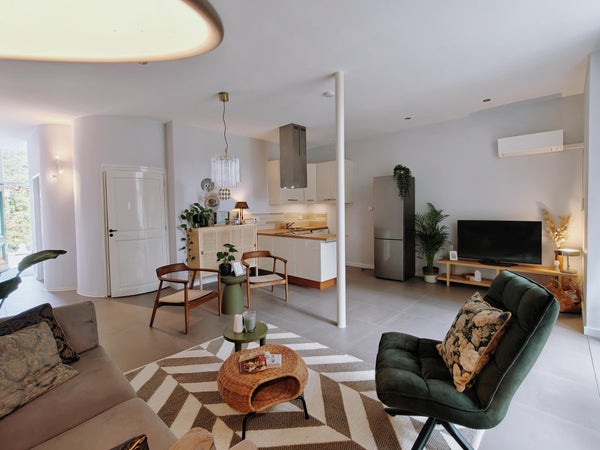 - De benedenwoning heeft een woonoppervlakte van 74 m² en beschikt over 2 kamers, waarvan 1 slaapkamer;