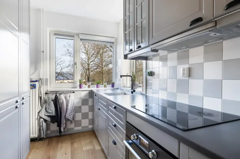 Op de begane grond vindt u een afgesloten entree met trapopgang. Op de tweede verdieping komt u binnen via de galerij. De hal biedt toegang tot een apart toilet en de meterkast. De half-open keuken is praktisch ingericht en voorzien van moderne apparatuur. De royale woonkamer van circa 25 m² heeft toegang tot het zonnige balkon op het zuidwesten.