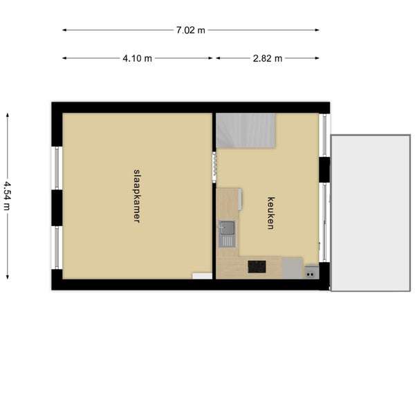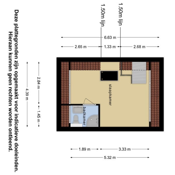 - De bovenwoning heeft een woonoppervlakte van 53 m² en beschikt over 2 kamers, waarvan 1 slaapkamer;