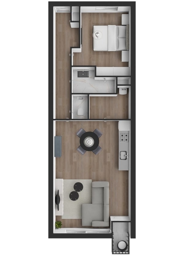 • De bovenwoning heeft een woonoppervlakte van 58 m² en beschikt over 2 kamers, waarvan 1 slaapkamer;
