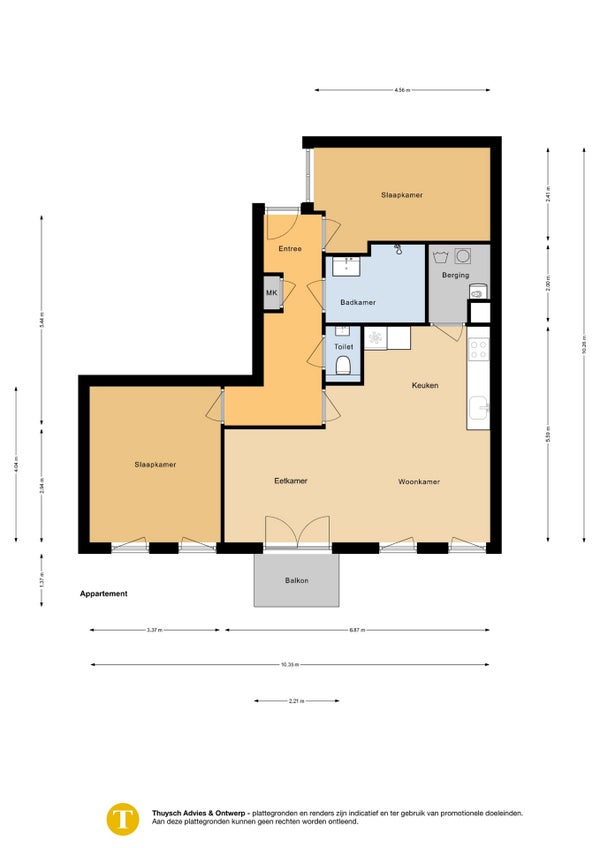 - De galerijflat heeft een woonoppervlakte van 76 m² en beschikt over 3 kamers, waarvan 2 slaapkamers;