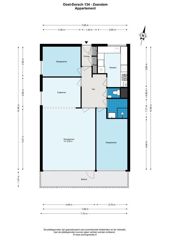 - De galerijflat heeft een woonoppervlakte van 83 m² en beschikt over 3 kamers, waarvan 2 slaapkamers;