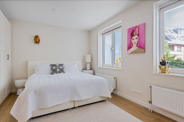 De badkamer is uitgerust met een ligbad, douchecabine en dubbele wastafel, waardoor luxe en comfort hand in hand gaan. Met een energielabel A, triple glas en CV-verwarming, is deze woning ook nog eens energiezuinig en comfortabel. Het balkon op het Westen biedt een aantrekkelijke buitenruimte om te genieten van de zon en de frisse lucht.