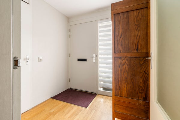 Via de entree kom je in de hal met toegang tot de ruime berging, voorzien van aansluiting voor wasmachine en droger.