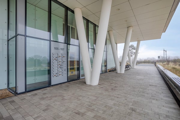 The apartment complex is easily accessible by public transport, with regular bus services and a train station approximately a 10-minute walk away. In the immediate vicinity, you’ll find sports fields and a small shopping center with a supermarket. Both the beach and the village center, with its array of shops and restaurants, are within cycling distance, allowing you to enjoy both village charm and seaside living.
