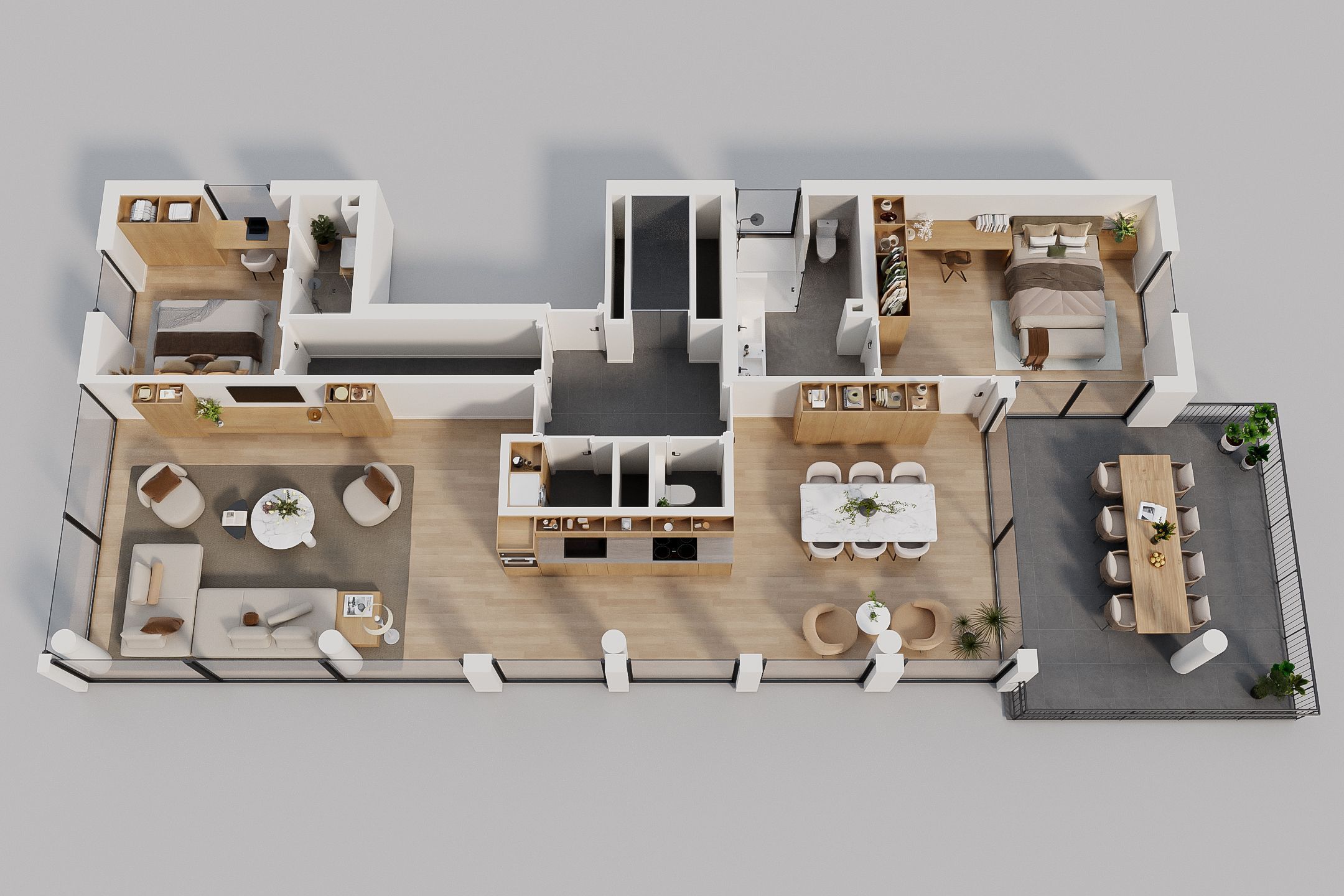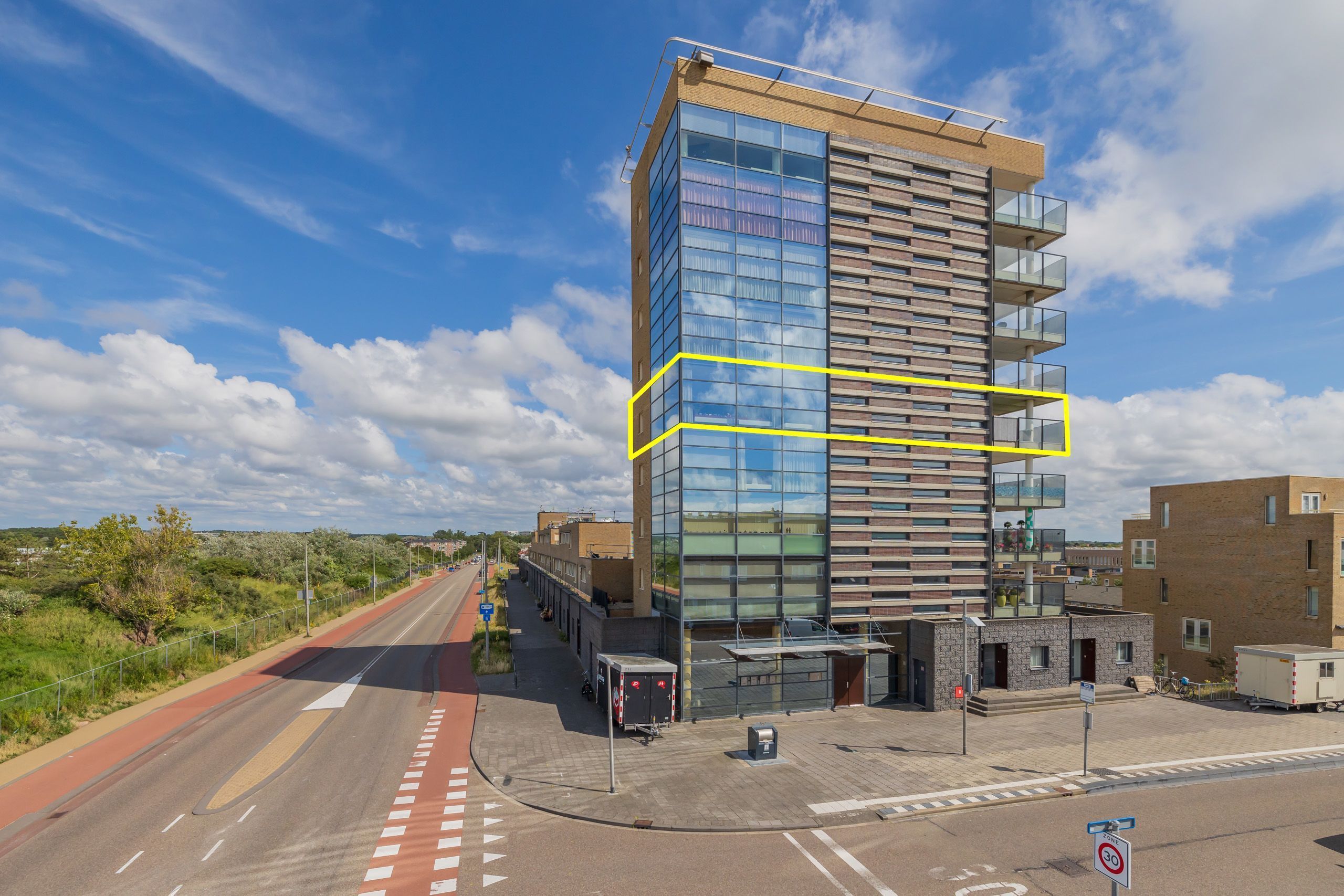 - De galerijflat heeft een woonoppervlakte van 130 m² en beschikt over 3 kamers, waarvan 2 slaapkamers;