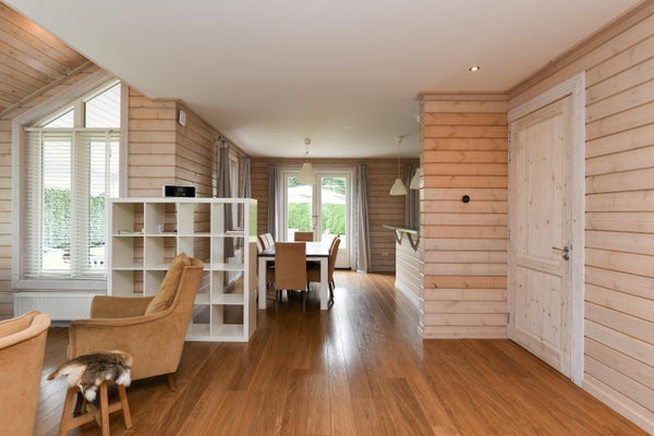 Gelegen op recreatiepark ’t Horsterwold, vinden we deze unieke vrijstaande houten villa van 167 m² op een royaal perceel van 718 m² in een rustige, bosrijke omgeving aan de rand van Zeewolde. De woning biedt een hoogwaardige woonbeleving en is ideaal als tweede huis of verhuurobject. Nabij het centrum van Zeewolde en omringd door het Horsterwold, genieten bewoners van rust, natuur en alle dagelijkse voorzieningen. De indeling omvat een royale entree, een lichte woonkeuken met openslaande deuren naar de tuin, een gezellige woonkamer met grote ramen, en vier slaapkamers op de bovenverdieping. De tuin biedt volop privacy met een zonneterras, barbecue hoek en trampoline. Verder zijn er faciliteiten zoals een zwembad en tennisbanen op het park.