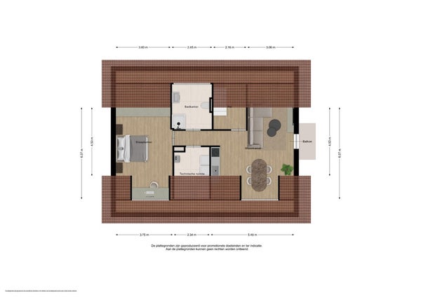 - De bovenwoning heeft een woonoppervlakte van 61 m² en beschikt over 2 kamers, waarvan 1 slaapkamer;