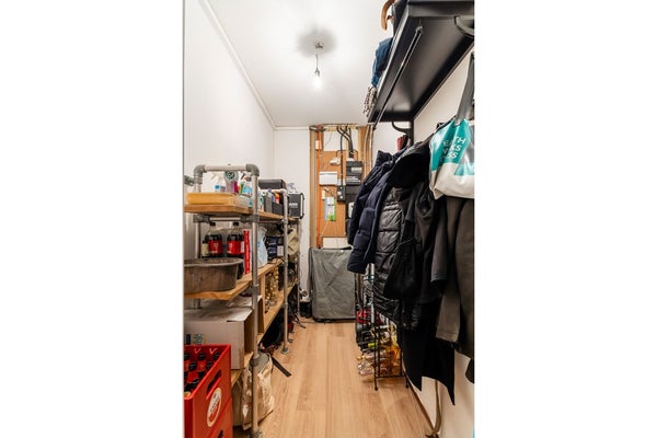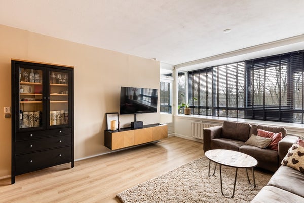 Entree, berging, separaat toilet en toegang tot de woonkamer, badkamer en slaapkamer. In de ruime woonkamer (ca. 40m2) is de open keuken. De keuken heeft een L- vormige opstelling en is in november 2023 vernieuwd. Tevens is de keuken voorzien van een Bora inductie vierpits kookplaat met afzuiging, Aqua hot water(kook)kraan, vaatwasser en combi oven. Vanuit de woonkamer is de loggia te bereiken welke is ingericht als werkkamer. Een fijne slaapkamer en badkamer welke is gerenoveerd waarbij alle aansluitingen in de muur zijn weggewerkt en in 2023 voorzien van nieuw badkamermeubilair, inloop douche en mengkraan met regendouche.
