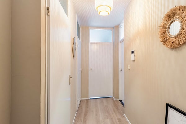 Je komt binnen via de verzorgde, afgesloten entree met video-intercom en brievenbussen. Bezoekers krijgen enkel toegang via bewoners.