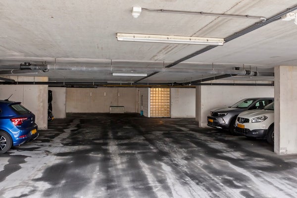 Dit appartement heeft een ruime en lichte woonkamer, twee goed bemeten slaapkamers, moderne half open keuken, luxe badkamer en een eigen overdekte parkeerplaats in het souterrain.