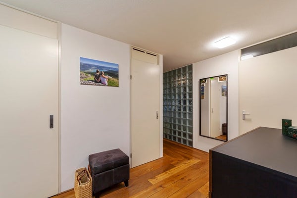 De tweede slaapkamer ligt evenals de hoofdslaapkamer en het balkon aan de achterzijde van het complex.