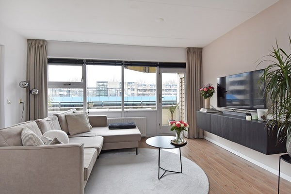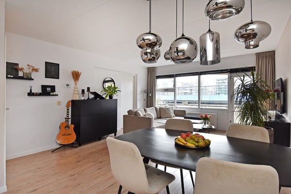 Entree, hal met meterkast en toegang tot de woonkamer. De woonkamer is licht en biedt direct toegang tot het balkon over de volle breedte van de woning: een fijne plek om na werk of in het weekend buiten te zitten. De open keuken is in 2021 vernieuwd en voorzien van onder andere een inductiekookplaat, combi oven-magnetron, vaatwasser, koel-vriescombinatie. Genoeg plaats voor een eetkamer tafel om gezellig te eten met vrienden en/of familie. Vanuit de woonkamer toegang tot de zeer ruime slaapkamer en eveneens toegang tot het balkon. De badkamer is netjes afgewerkt en beschikt over een douchehoek en wastafelmeubel en opstelplaats voor wasmachine en droger. Daarnaast is er een aparte kast voor de cv-ketel en met extra bergruimte. Het zonnige balkon van ongeveer 14 m² ligt op het zuiden en is bereikbaar vanuit zowel de woonkamer als de slaapkamer.