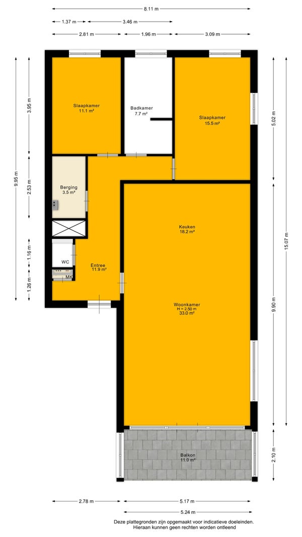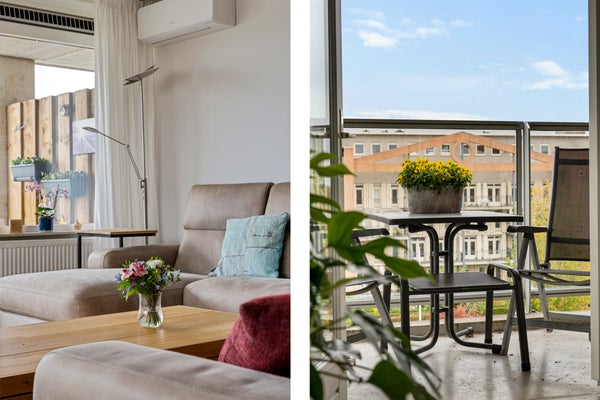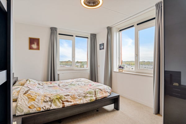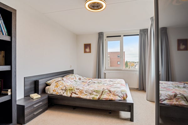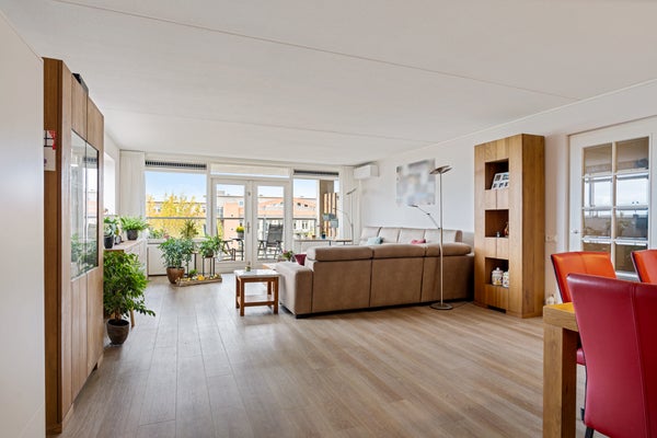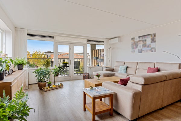 - De portiekflat heeft een woonoppervlakte van 106 m² en beschikt over 3 kamers, waarvan 2 slaapkamers;