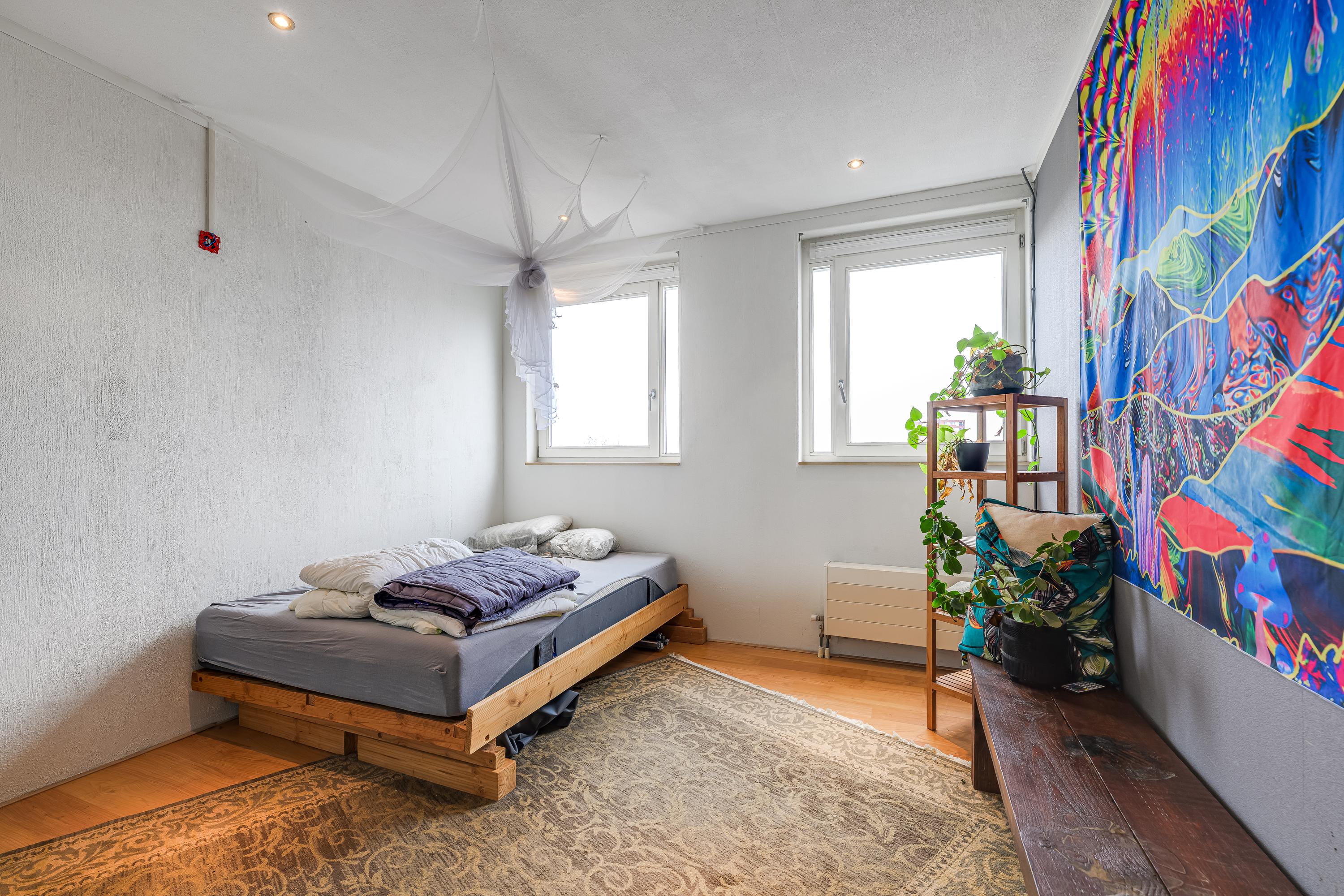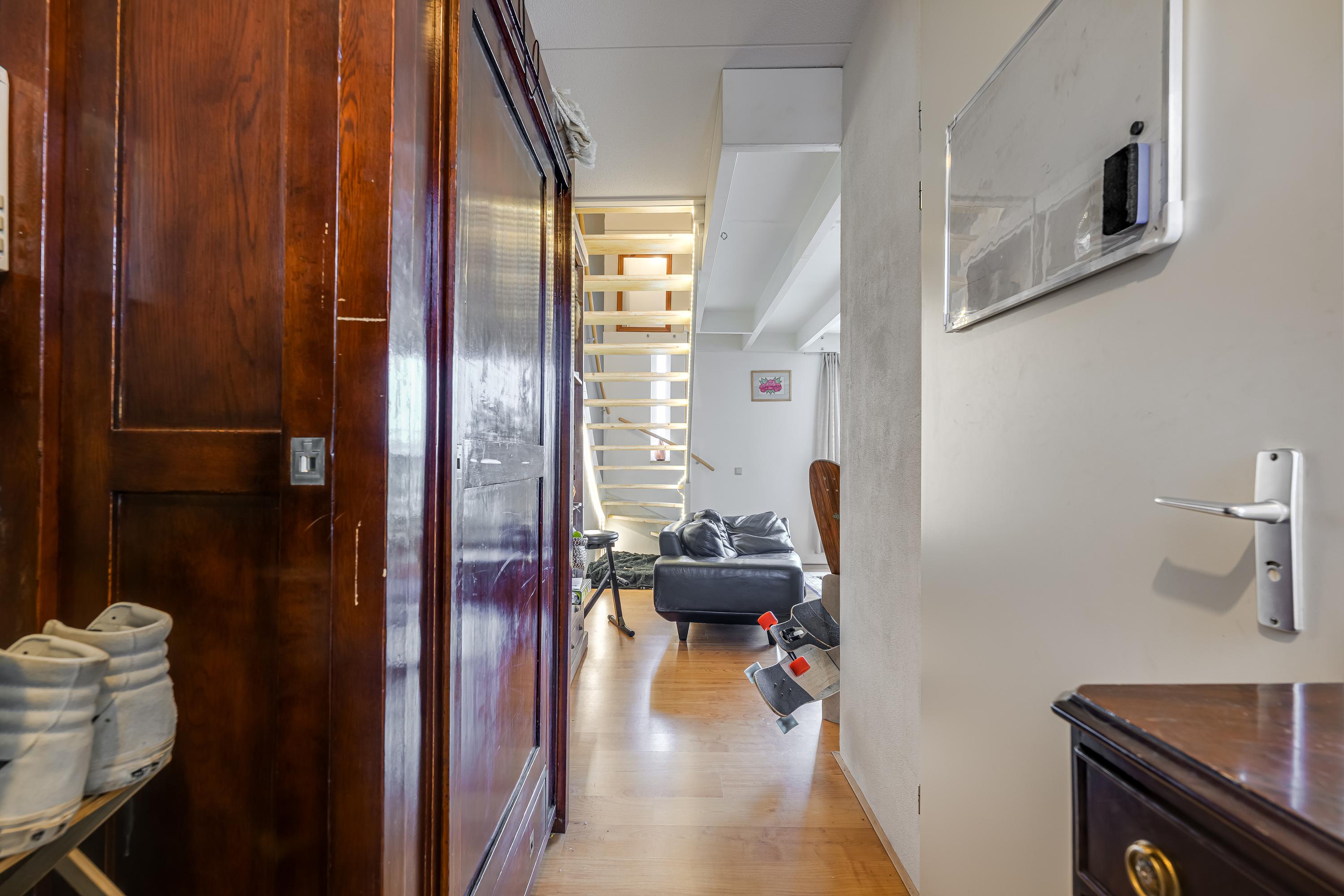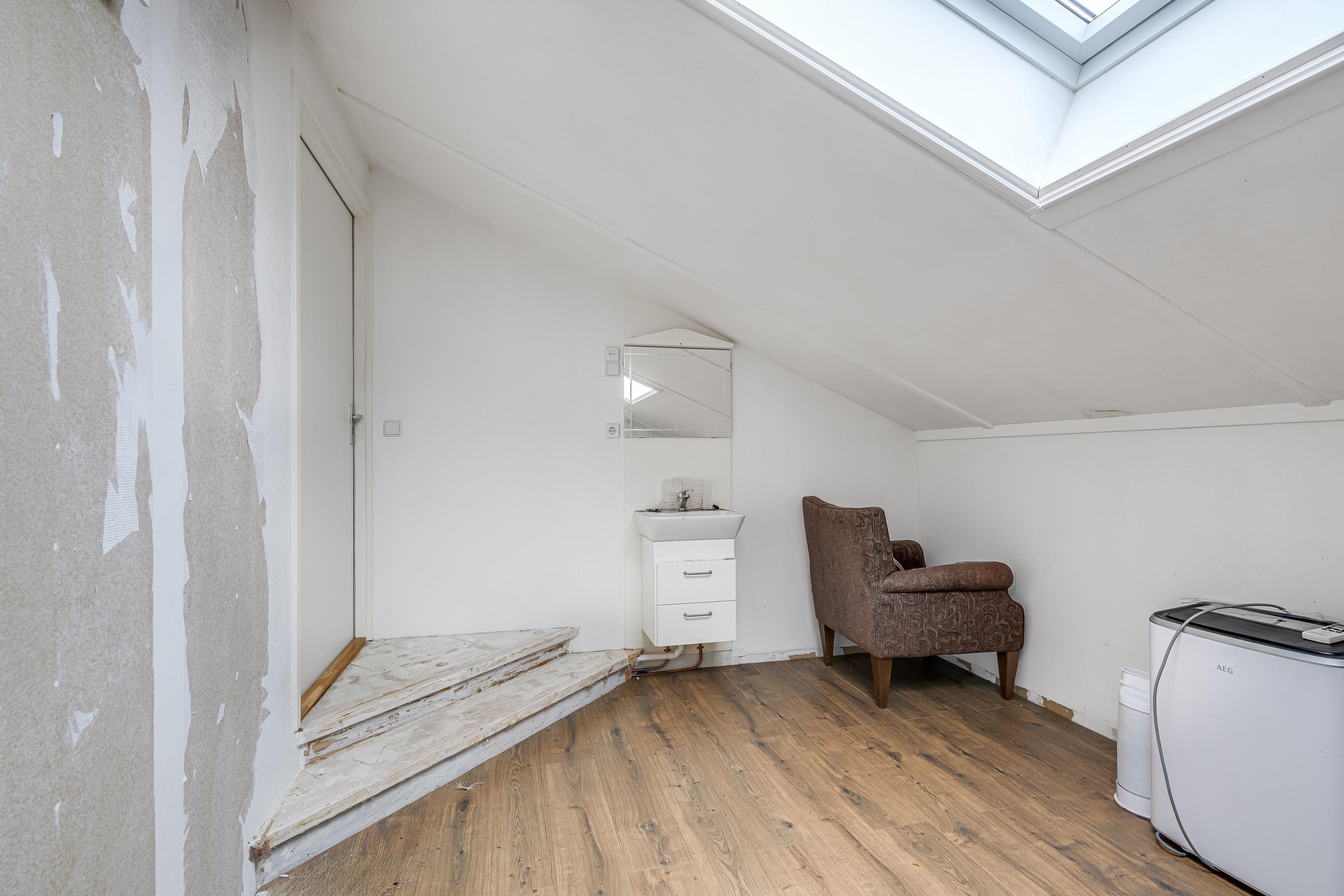 Op de eerste etage bevindt zich de badkamer met douche en wasmachineaansluiting. De tweede etage biedt toegang tot de slaapkamers, waarvan één met toegang tot de vliering als extra bergruimte. Gelegen nabij voorzieningen en de RandstadRail, is de woning goed bereikbaar. De actieve VVE vraagt een maandelijkse bijdrage van € 114,54.