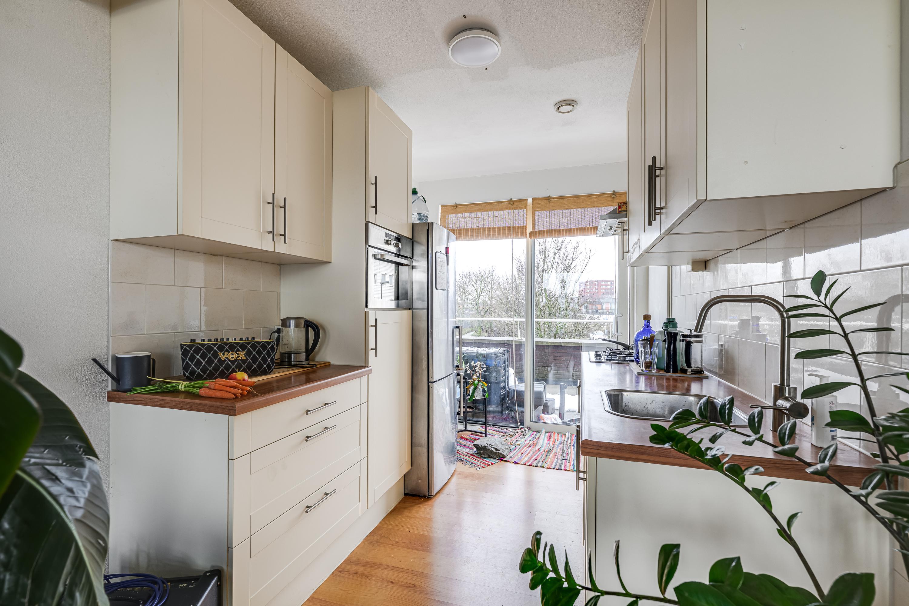 In de kindvriendelijke wijk Oosterheem ligt deze maisonnette, verdeeld over de eerste en tweede etage. Met een energielabel A biedt de woning vier kamers, waaronder drie slaapkamers. In 2020 is er een extra slaapkamer gerealiseerd op de tweede etage, wat de indeling praktisch maakt voor gezinnen of thuiswerkers. De woonkamer is licht en biedt vrij uitzicht. De keuken is functioneel en sluit aan op de woonkamer.