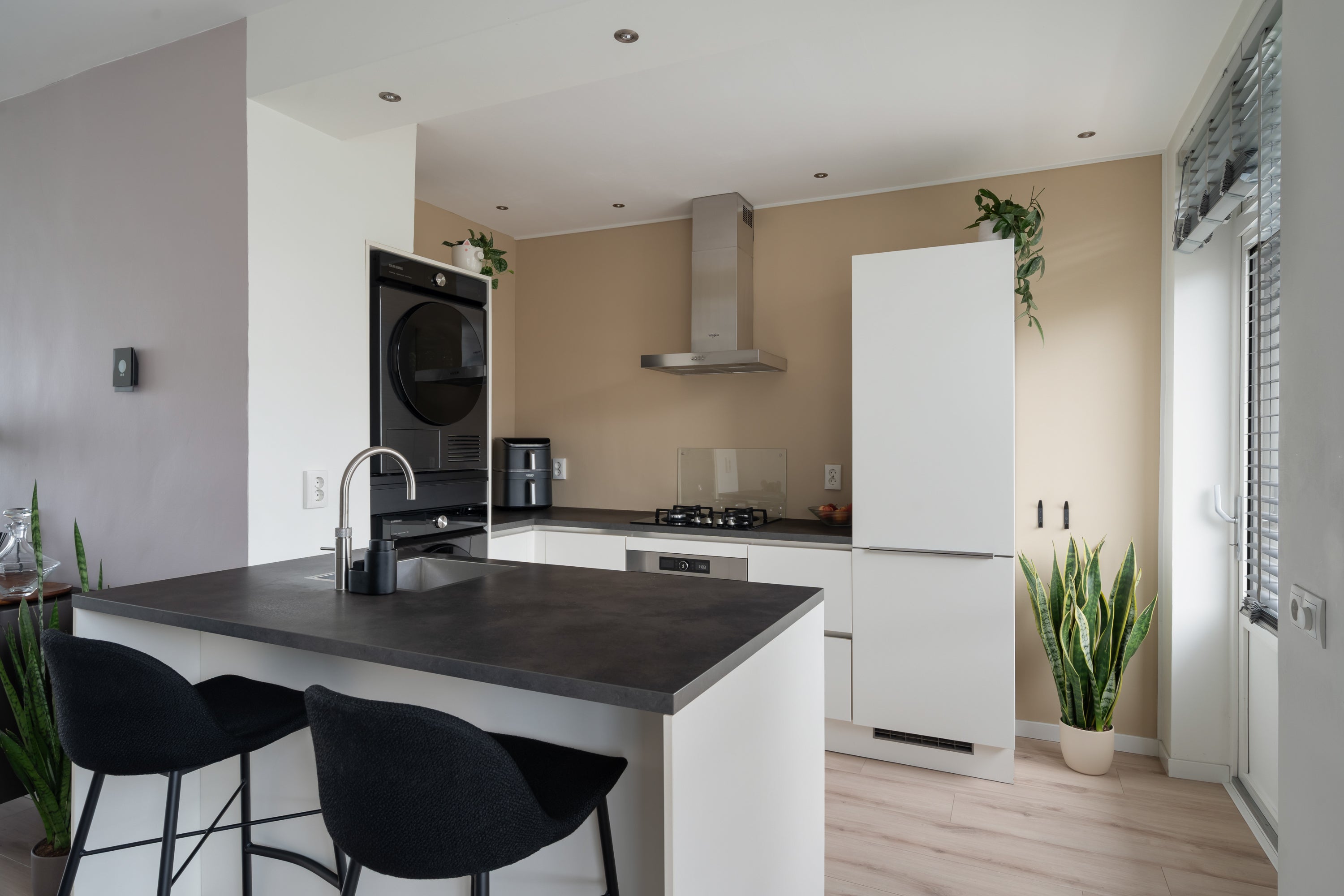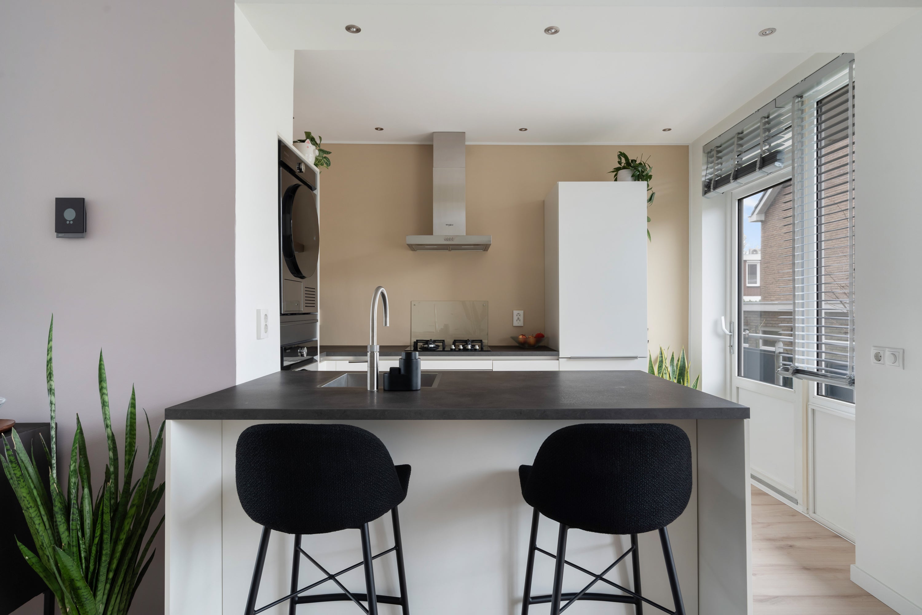 Dit turn-key, strak afgewerkte en moderne 3-kamer appartement in Dorp biedt een riante woonkamer en een luxe keuken, vernieuwd in 2020. Met twee balkons en toegang tot een gemeenschappelijke tuin op het zonnige zuidwesten, is dit appartement werkelijk instapklaar. De ingelichte hal leidt naar de woonkamer, voorzien van laminaat en een open keuken met inbouwapparatuur, waaronder een gasfornuis en combi-oven. De hoofdslaapkamer heeft toegang tot het balkon, terwijl de tweede slaapkamer ook ruimte biedt voor een werkplek. De nette badkamer beschikt over een inloopdouche en wastafel. Dit appartement van 70m², met twee slaapkamers en een eigen fietsenberging, ligt centraal en dichtbij diverse voorzieningen, met openbaar vervoer en parkeergelegenheid voor de deur.