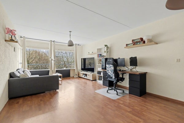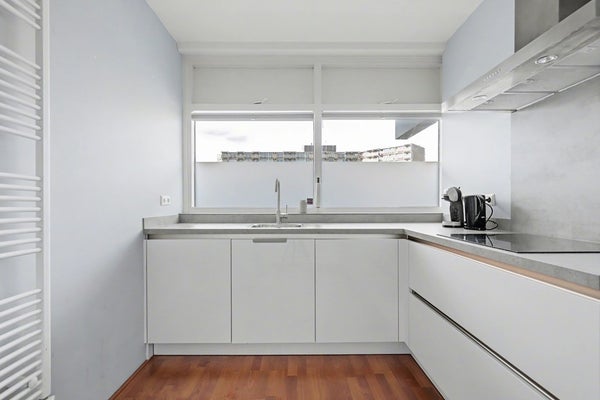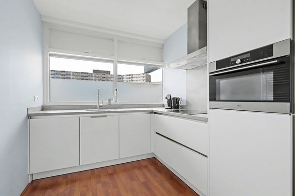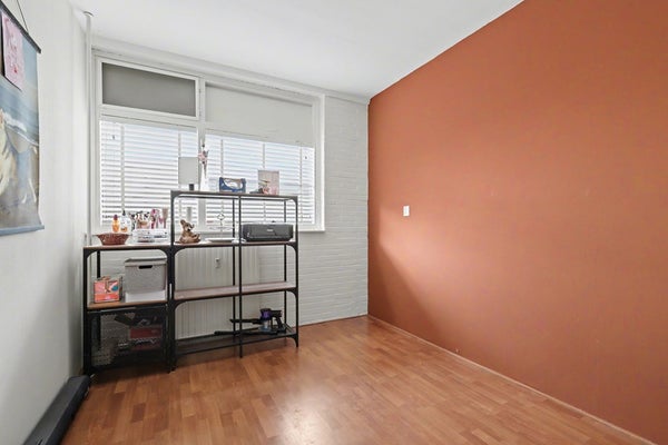 Achter de voordeur komt u in de hal (ca 2,5x1,5m) met garderobe en meterkast. De lichte woonkamer (ca 8,6x4,1m) is een heerlijke leefruimte met een mooi uitzicht en een nette laminaatvloer. Vanuit hier heeft u toegang tot: een ruime slaapkamer (ca 4,8x2,8m) aan de voorzijde voorzien van een praktische schuifkastenwand; de moderne Bruynzeel keuken (ca 4,1x2,6m) ligt eveneens aan de voorzijde en is compleet uitgerust met een 4-pits inductiekookplaat met afzuigkap, vaatwasser, combimagnetron, koelkast en vriezer – ideaal voor wie van koken houdt.