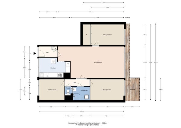 - De galerijflat heeft een woonoppervlakte van 92 m² en beschikt over 4 kamers, waarvan 3 slaapkamers;