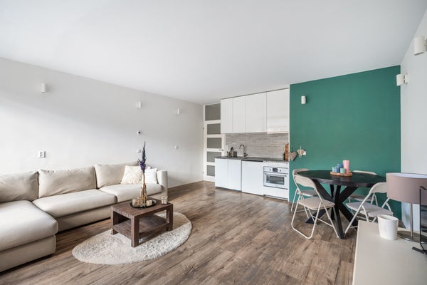 - De benedenwoning heeft een woonoppervlakte van 54 m² en beschikt over 2 kamers, waarvan 1 slaapkamer;