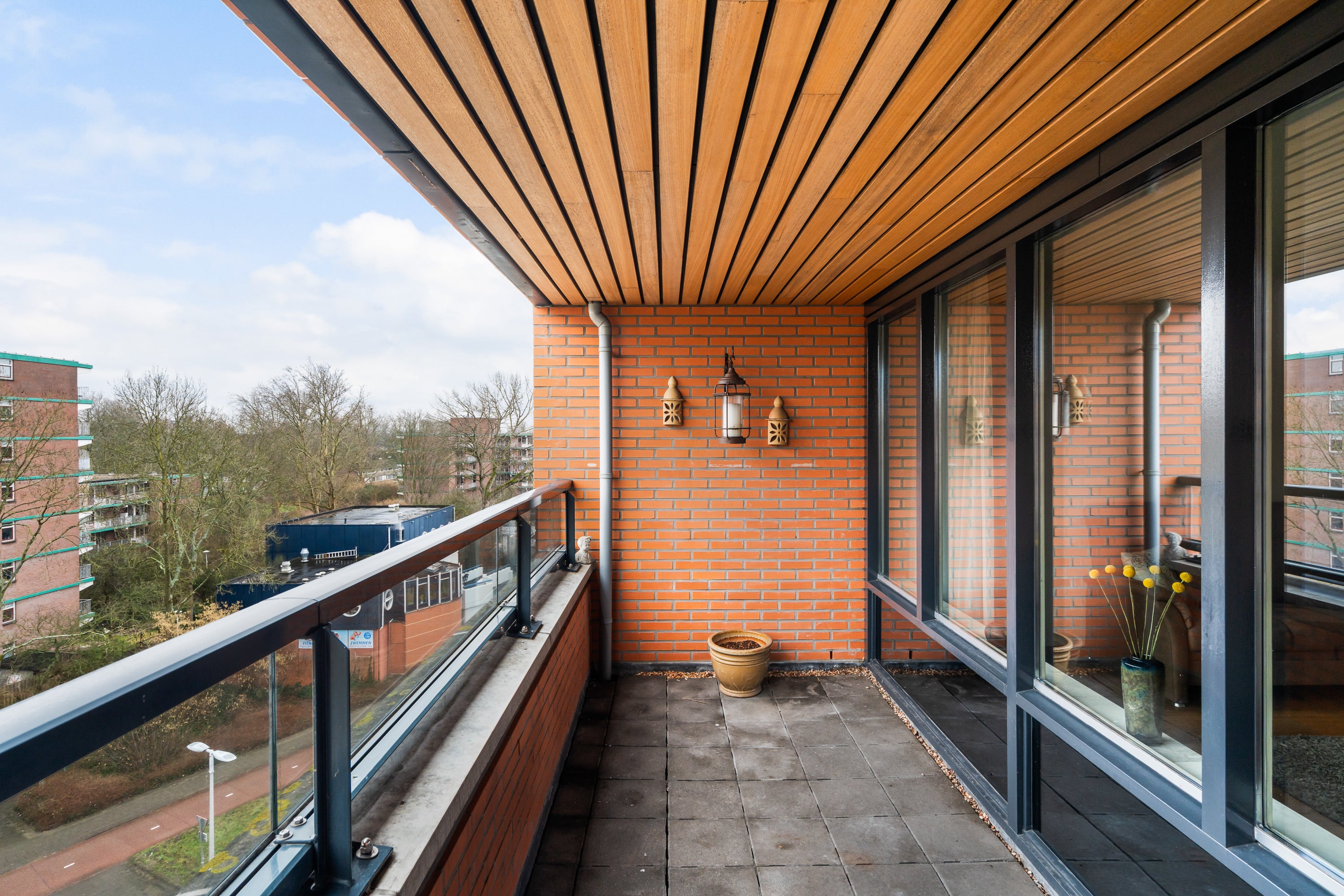- De galerijflat heeft een woonoppervlakte van 94 m² en beschikt over 3 kamers, waarvan 2 slaapkamers;