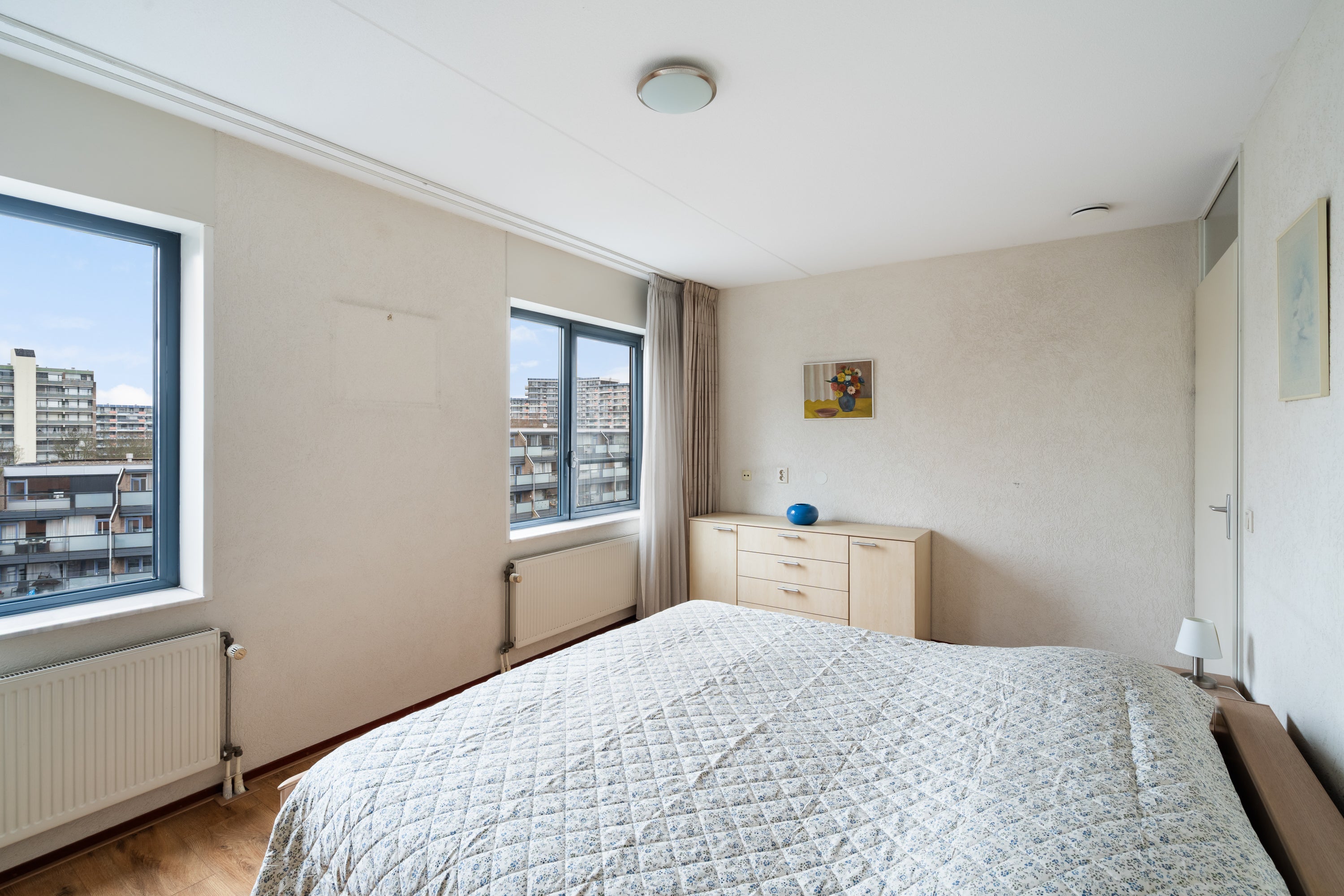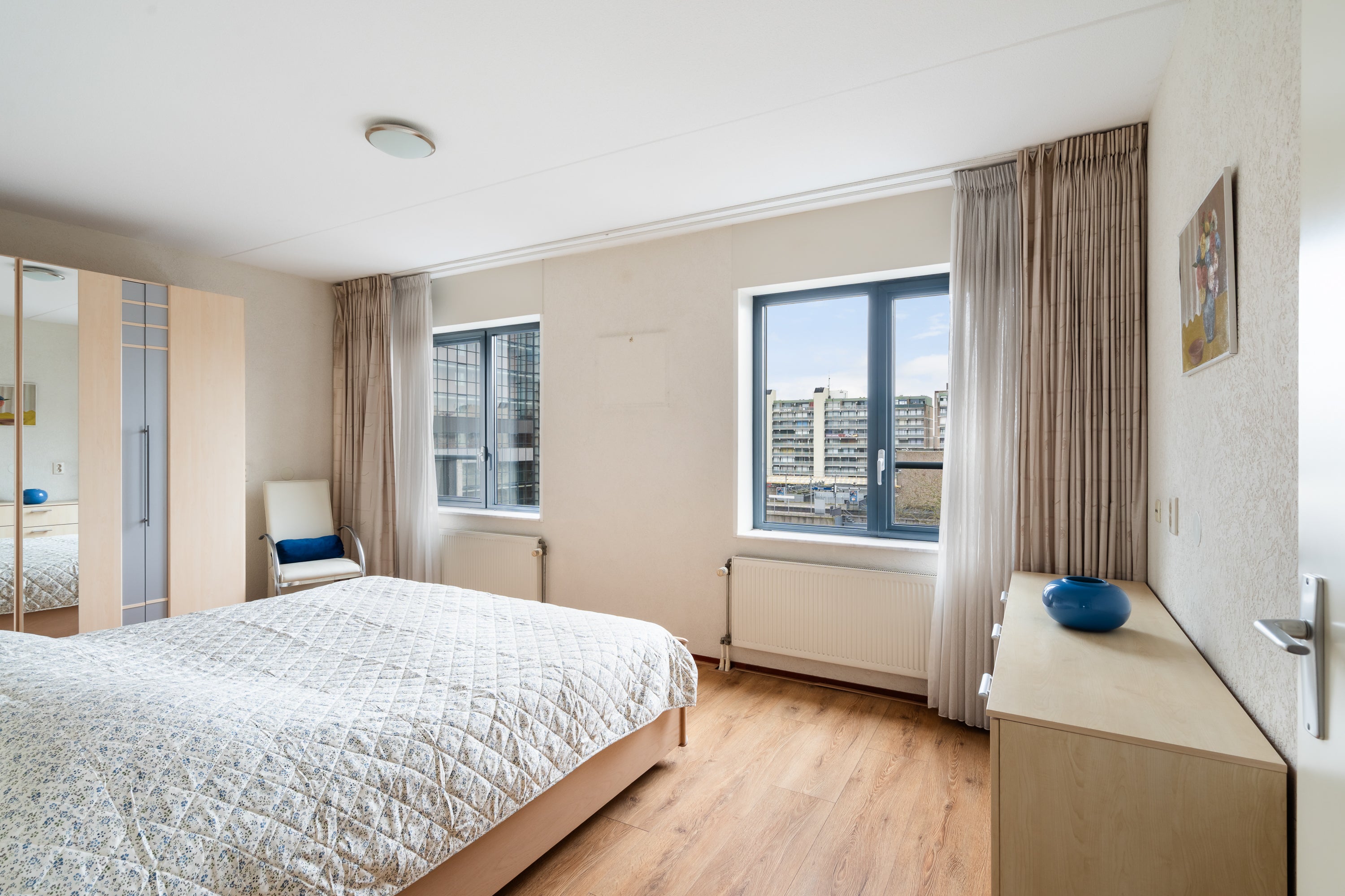 Dit ruime en gelijkvloerse 3-kamer appartement is gelegen op de 6e etage van het appartementencomplex Cerca in de wijk Meerzicht. Met een woonoppervlak van 94 m² biedt het veel lichtinval dankzij de hoekligging. De woonkamer, afwerkt met een parketvloer, leidt naar het balkon waar je van de ochtendzon kunt genieten. De nette keuken is voorzien van moderne apparatuur, terwijl de riante hoofdslaapkamer en tweede kamer beide laminaatvloeren hebben. De royale badkamer heeft zowel een ligbad als een aparte douche. Voldoende bergruimte is aanwezig, evenals een aparte toiletruimte. Extra voordelen zijn de lift, de overdekte privé parkeerplaats op afgesloten terrein en de nabijheid van het wijkwinkelcentrum met alle voorzieningen. Energielabel A+.