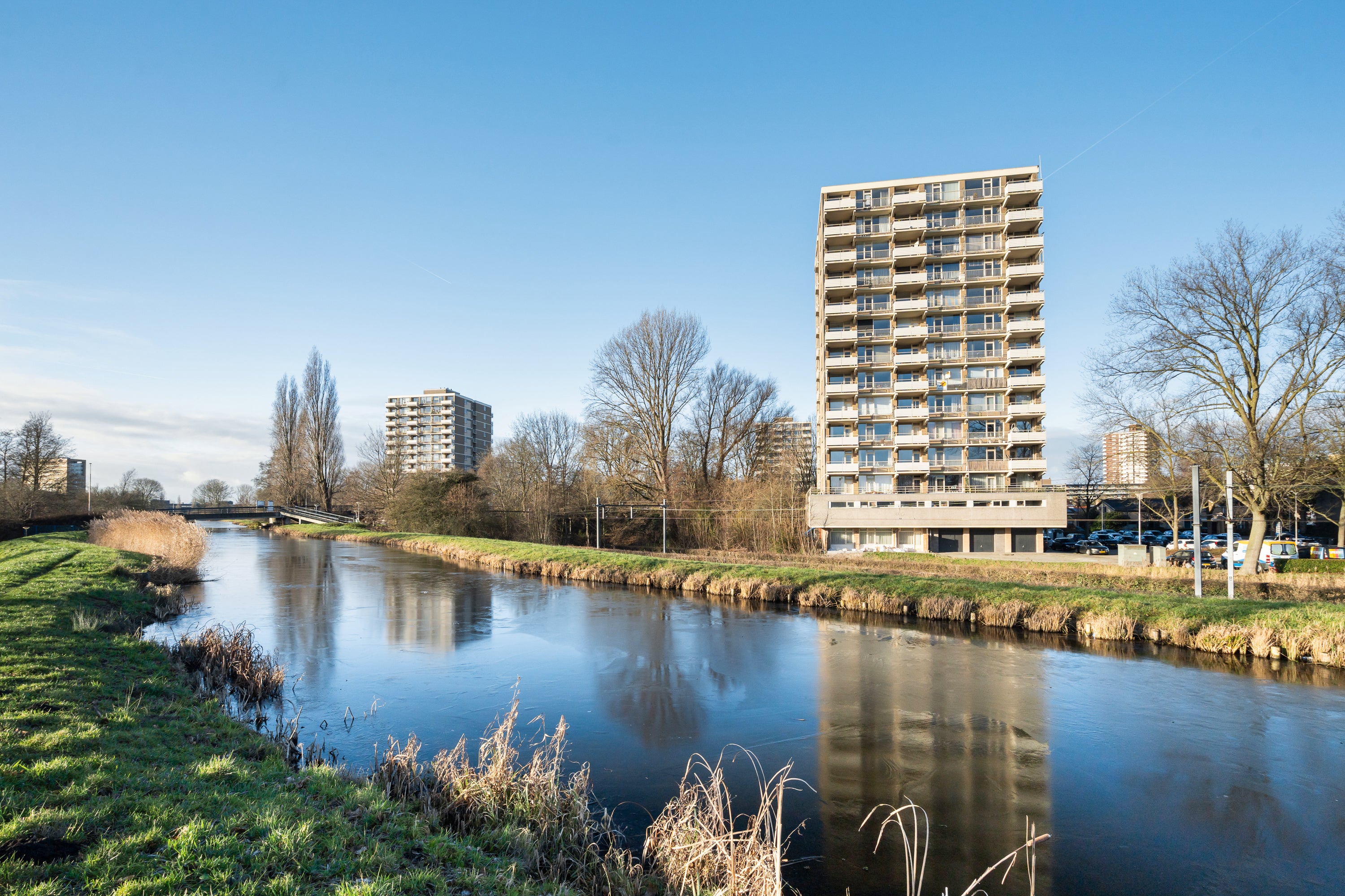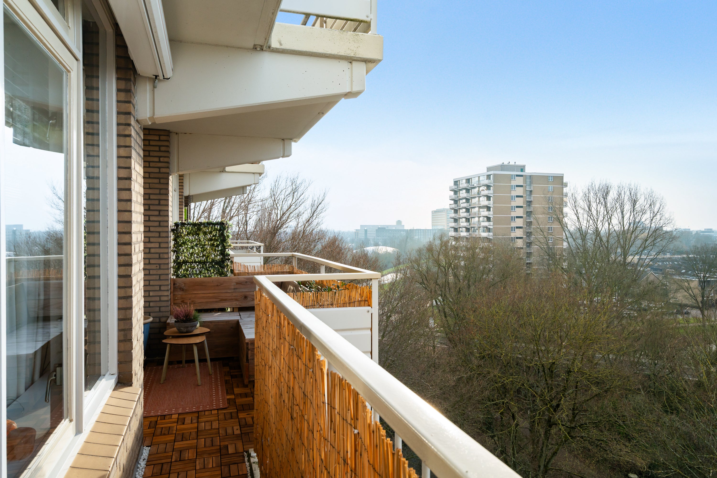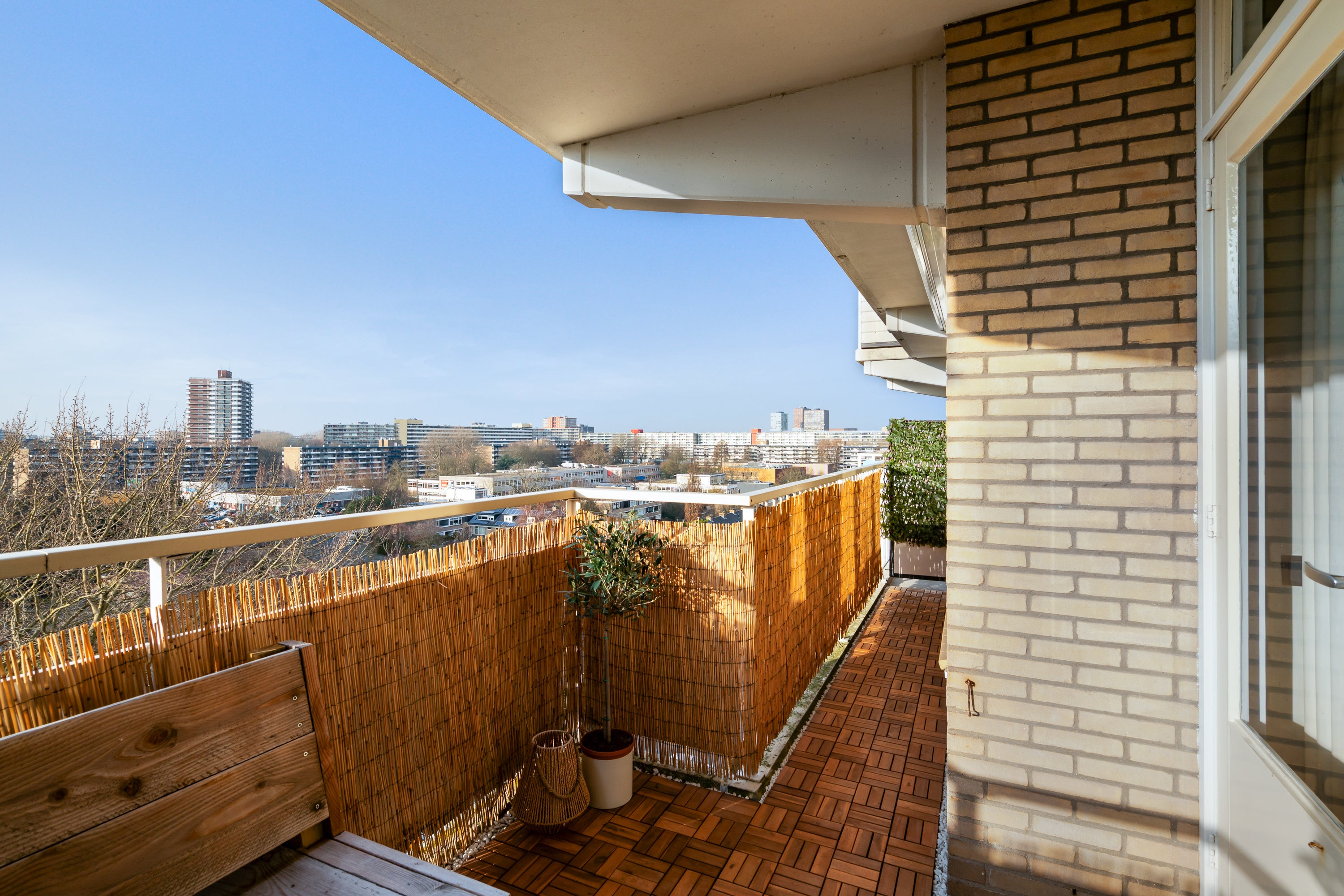 Dit modern afgewerkte en uitstekend verzorgde 2-kamer appartement ligt op de 7e woonlaag van een goed onderhouden complex met twee liften. Vanuit het appartement geniet je van een fantastisch uitzicht over Driemanspolder. De moderne keuken is uitgerust met een koelkast, vaatwasser en inductiekookplaat, met een gezellige ontbijtbar die de keuken en woonkamer verbindt. De ruime slaapkamer heeft toegang tot een moderne badkamer met inloopdouche. Voor extra comfort is er een aparte toiletruimte. Op het westen gelegen is er een balkon met vrij zicht, perfect voor de middag- en avondzon. De centrale ligging nabij het winkelcentrum De Vijverhoek, openbaar vervoer en uitvalswegen maakt dit appartement zeer toegankelijk. Met een woonoppervlakte van circa 59 m² is er voldoende ruimte, inclusief een eigen berging en openbare parkeermogelijkheden.