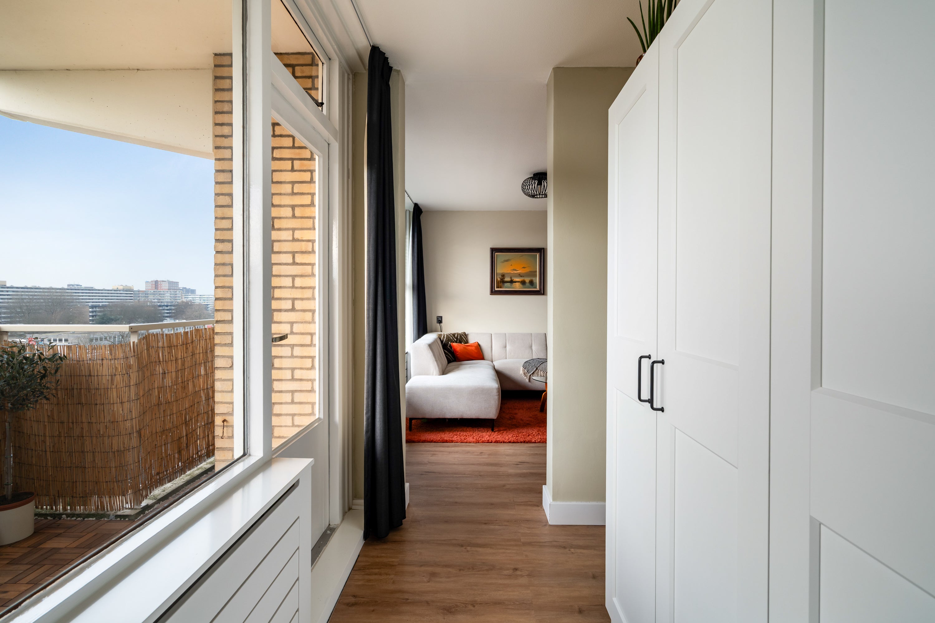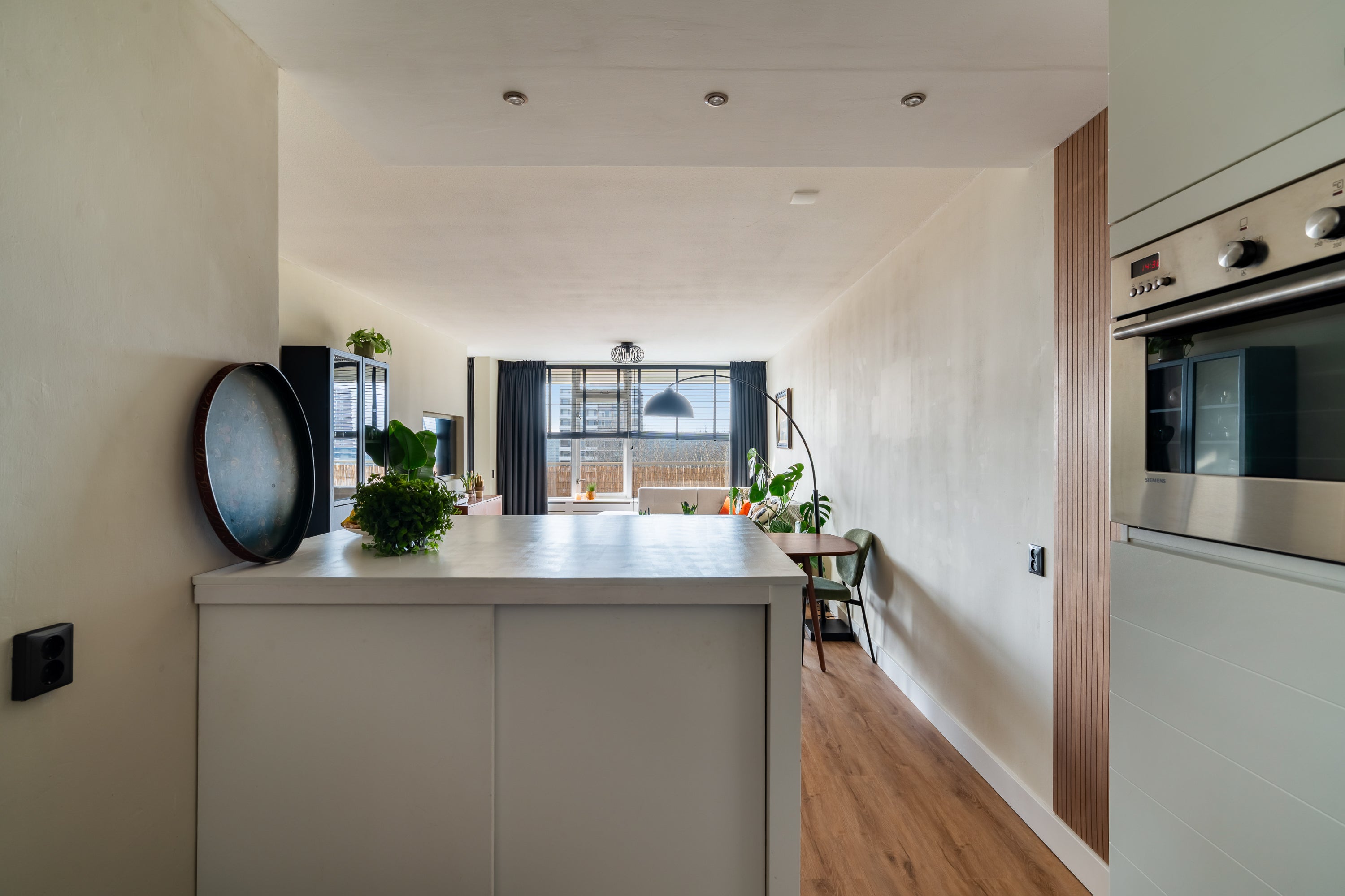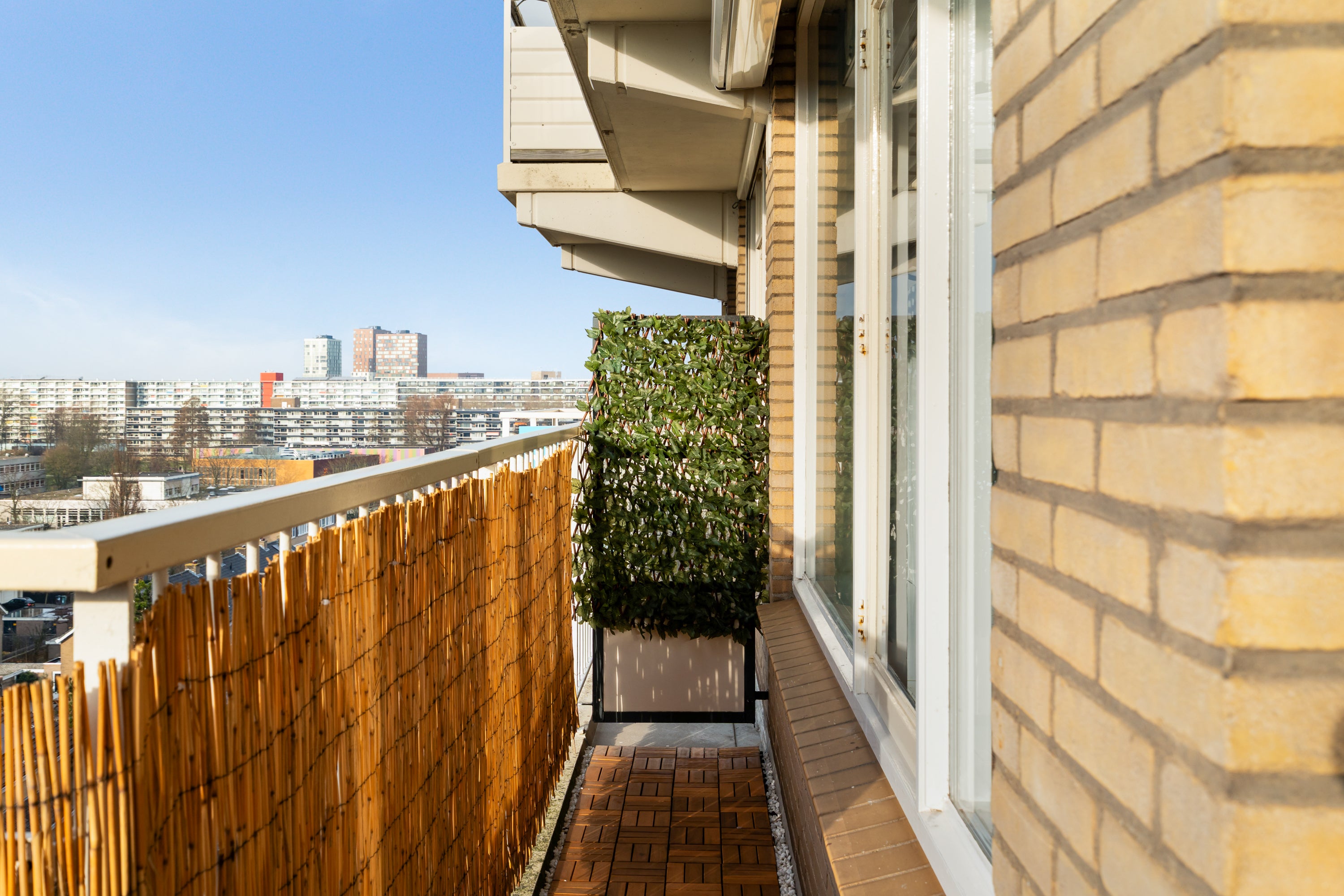 Dit modern afgewerkte en uitstekend verzorgde 2-kamer appartement ligt op de 7e woonlaag van een goed onderhouden complex met twee liften. Vanuit het appartement geniet je van een fantastisch uitzicht over Driemanspolder. De moderne keuken is uitgerust met een koelkast, vaatwasser en inductiekookplaat, met een gezellige ontbijtbar die de keuken en woonkamer verbindt. De ruime slaapkamer heeft toegang tot een moderne badkamer met inloopdouche. Voor extra comfort is er een aparte toiletruimte. Op het westen gelegen is er een balkon met vrij zicht, perfect voor de middag- en avondzon. De centrale ligging nabij het winkelcentrum De Vijverhoek, openbaar vervoer en uitvalswegen maakt dit appartement zeer toegankelijk. Met een woonoppervlakte van circa 59 m² is er voldoende ruimte, inclusief een eigen berging en openbare parkeermogelijkheden.