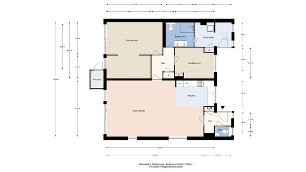 - De benedenwoning heeft een woonoppervlakte van 101 m² en beschikt over 3 kamers, waarvan 2 slaapkamers;