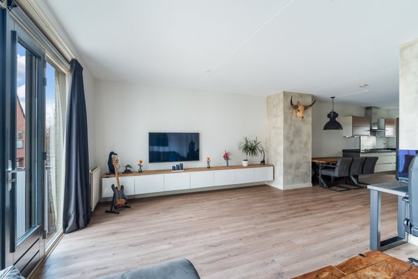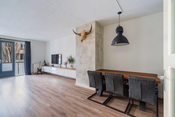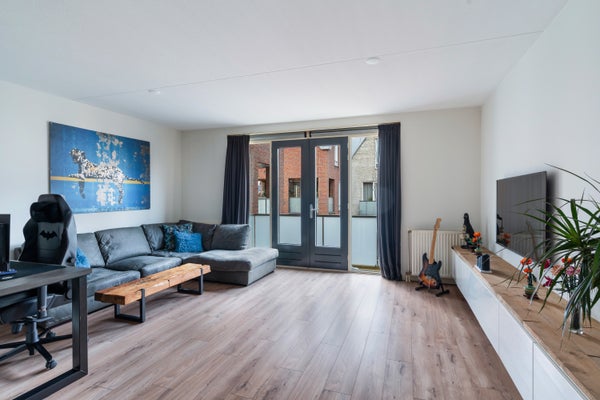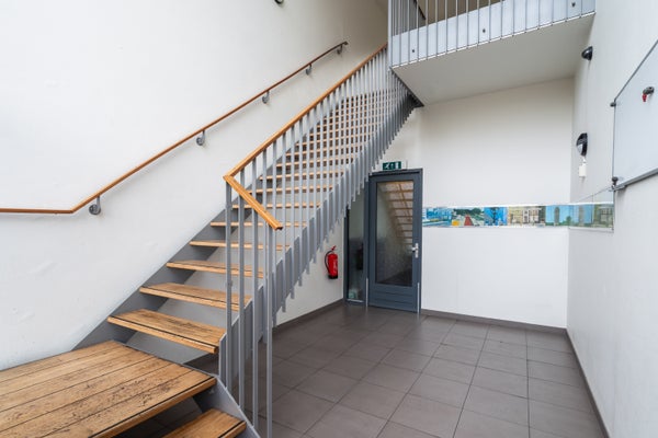 - De galerijflat heeft een woonoppervlakte van 100 m² en beschikt over 3 kamers, waarvan 2 slaapkamers;