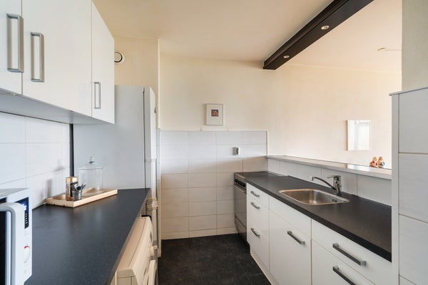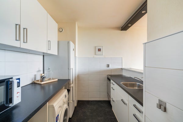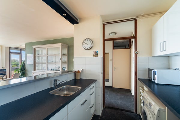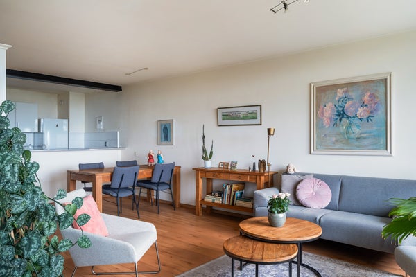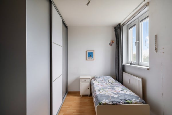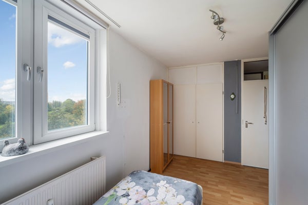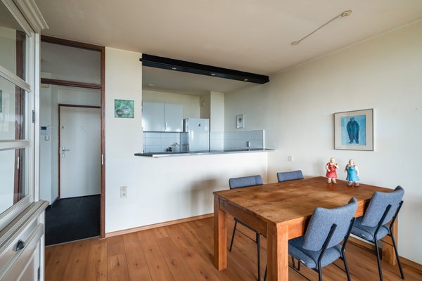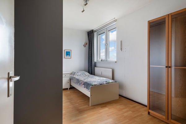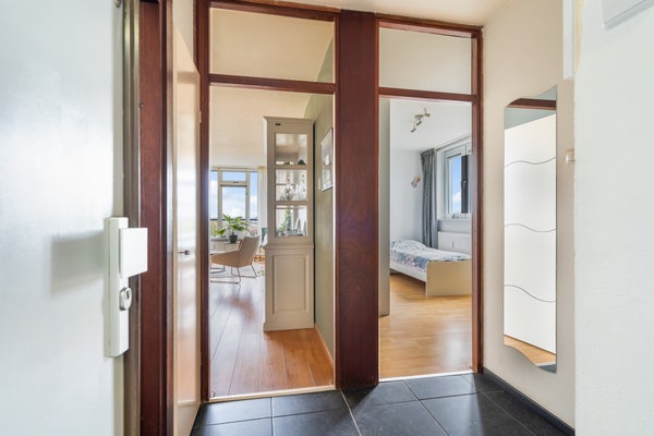 - De portiekflat heeft een woonoppervlakte van 64 m² en beschikt over 3 kamers, waarvan 2 slaapkamers;