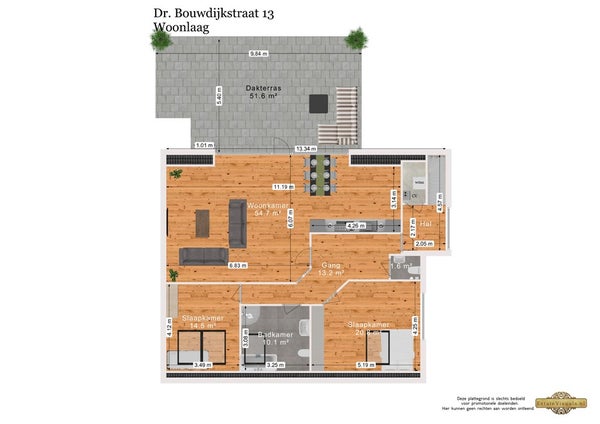 - De bovenwoning heeft een woonoppervlakte van 116 m² en beschikt over 3 kamers, waarvan 2 slaapkamers;