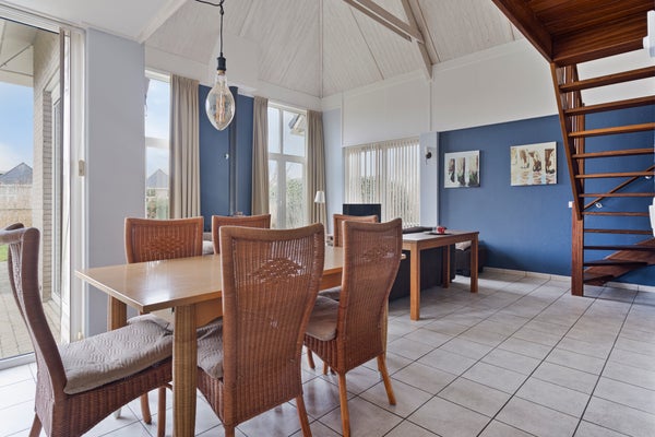 Op Kluut 3 in Zoutelande, op loopafstand van het dorp, strand en zee, staat deze ruime, vrijstaande vakantievilla (type Zeehond, gebouwd in 1999) op een perceel van 449 m². Bij binnenkomst vindt u een hal met garderobe en toilet, en de eerste slaapkamer met en-suite badkamer. De lichte woonkamer is voorzien van een houtkachel en heeft deuren naar een zonnig terras. De open keuken beschikt over moderne inbouwapparatuur. De eerste verdieping bereikt u via een open trap, met twee slaapkamers en een tweede badkamer. Buiten vindt u een inpandige berging voor fietsen en tuinmeubilair. De villa ligt aan een binnenwatertje. Zoutelande heeft diverse voorzieningen en gezellige restaurants en is een populaire badplaats.