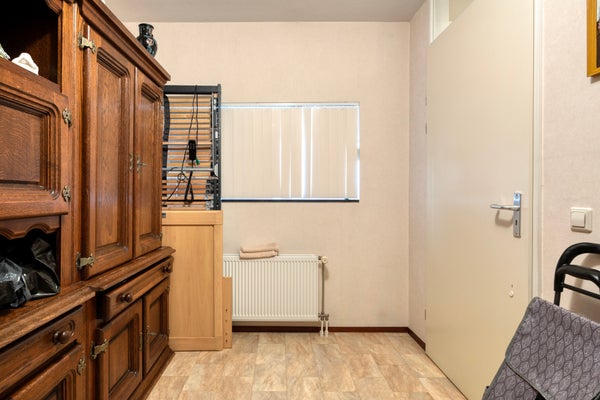 De badkamer is geheel betegeld, voorzien van een douchecabine met een thermostaatkraan, een badkamermeubel en een 2e toilet. Via de badkamer is middels een handige deur de hoofdslaapkamer te bereiken.