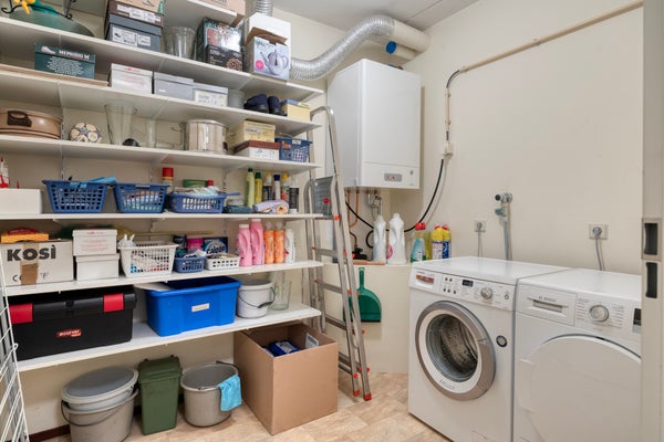De technische ruimte/bijkeuken is uitgerust met aansluitpunten t.b.v. de wasmachine-/drogeraansluiting.