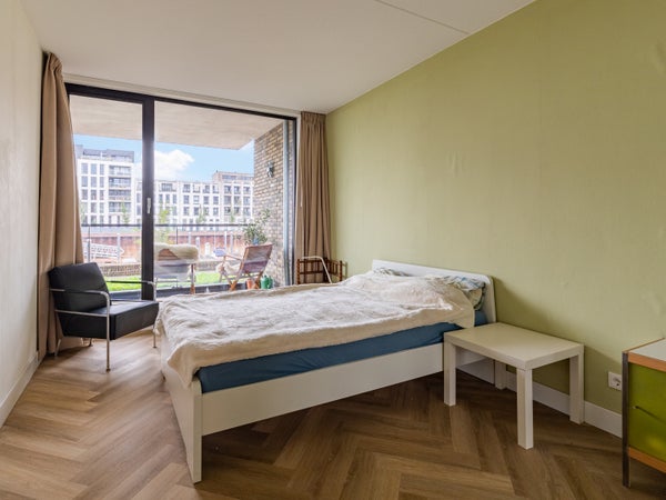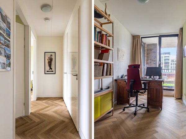 - De portiekflat heeft een woonoppervlakte van 103 m² en beschikt over 3 kamers, waarvan 2 slaapkamers;