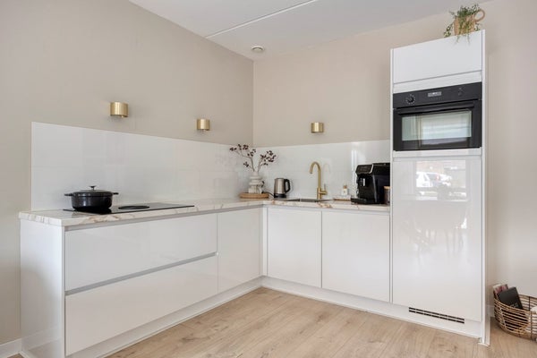 De woning heeft een woonoppervlakte van circa 78 m² en beschikt over 2 slaapkamers en eigen privé parkeerplaats. De luxe badkamer is voorzien van een bad, douchecabine en modern badkamermeubel, en het toilet is hangend met fontein. De woonkamer heeft een luxe open keuken met hoogwaardige inbouwapparatuur, waaronder een Bora inductiekookplaat met geïntegreerde afzuiging, vaatwasser en koel-/vriescombinatie. Vanuit de woonkamer is het zonnige terras op straatniveau direct bereikbaar. De gehele woning is voorzien van vloerverwarming, wat zorgt voor een aangenaam en comfortabel binnenklimaat.