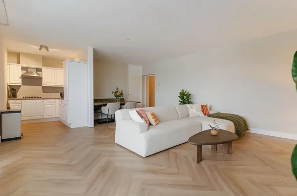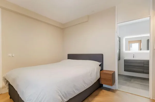 De strakke afwerking van wanden en plafonds, een prachtige PVC-vloer uit 2024 en een luxe badkamer maken het comfortabel. De nette keuken, voorzien van inbouwapparatuur, staat in open verbinding met de lichte woonkamer met grote ramen. De ruime slaapkamer heeft airconditioning en biedt toegang tot de badkamer, die compleet betegeld is en beschikt over een inloopdouche en een dubbel wastafelmeubel.