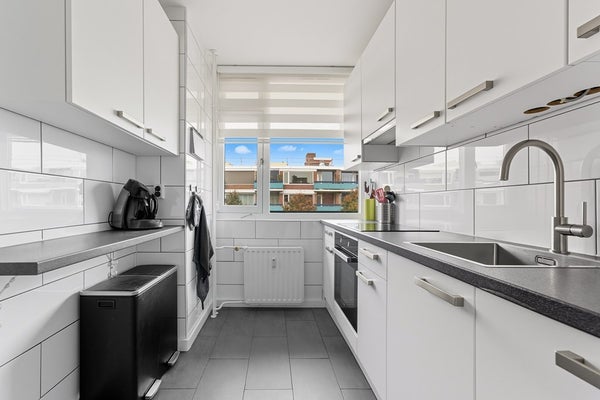 - De portiekflat heeft een woonoppervlakte van 79 m² en beschikt over 4 kamers, waarvan 3 slaapkamers;