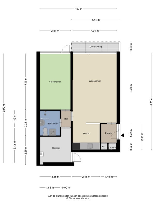 - De galerijflat heeft een woonoppervlakte van 57 m² en beschikt over 2 kamers, waarvan 1 slaapkamer;