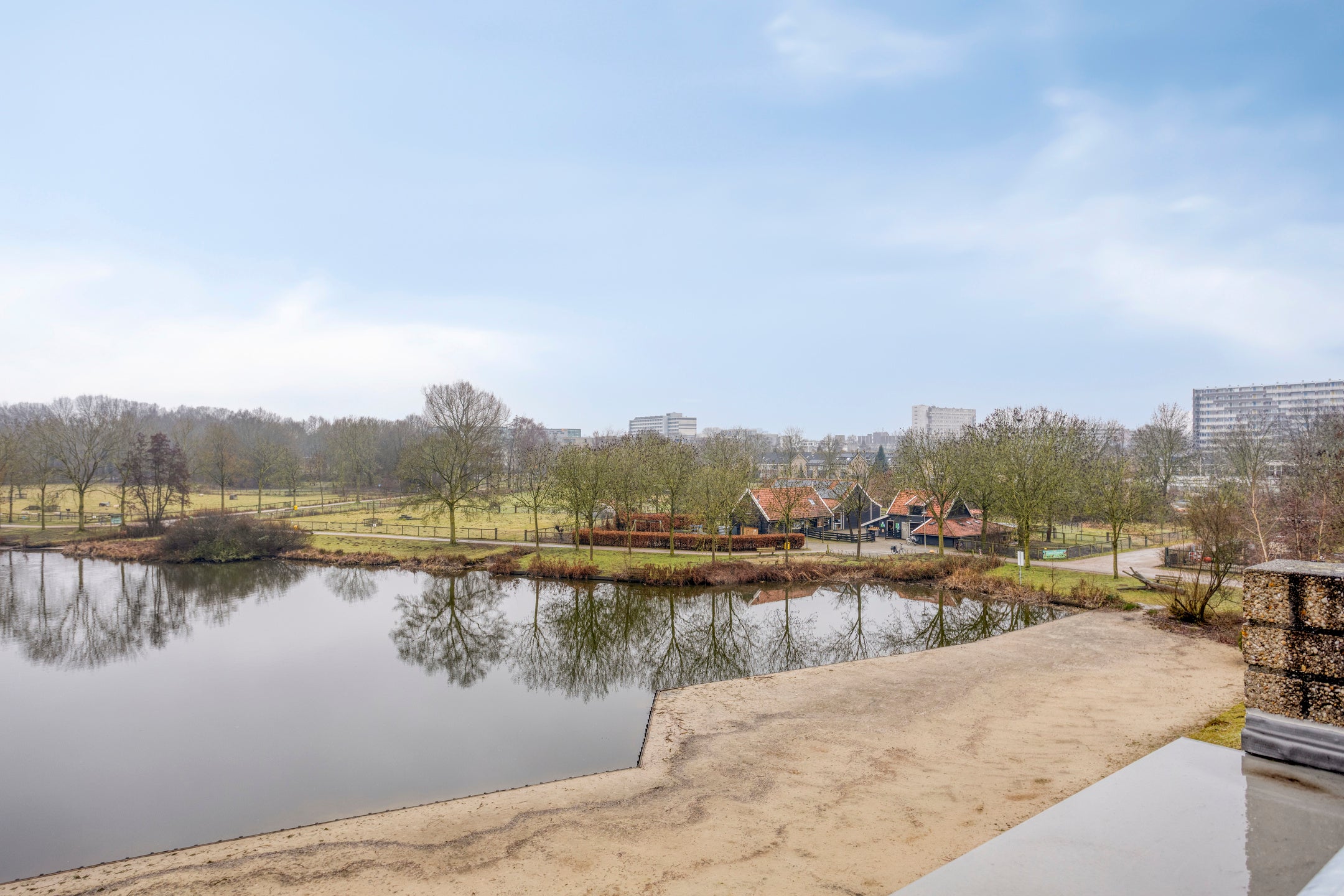Dit 4-kamer appartement is gelegen in de geliefde wijk AA-landen, aan de grote vijver de Dobbe. Met een zonnig terras op het zuiden en een uitzicht over het water, is de woonkamer extra ruim doordat de voormalige slaapkamer erbij betrokken is. De keuken is uitgerust met witte kasten en een dubbele spoelbak, en de badkamer heeft een ligbad met douche en wastafel. Op de tweede verdieping krijg je toegang tot een berging met wasmachineaansluiting en cv-ketel. De derde verdieping biedt een lichte woonkamer met halfopen keuken, twee slaapkamers en een separaat toilet. Verder is er een privéberging op de begane grond. Het winkelcentrum, scholen en recreatiemogelijkheden zijn dichtbij. De servicekosten bedragen € 216,75 per maand.
