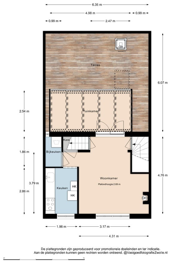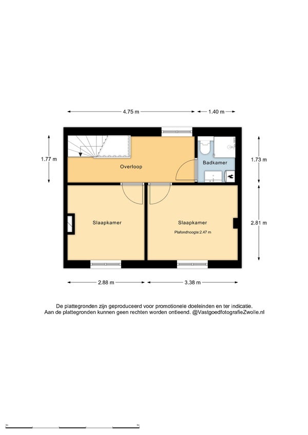 - De bovenwoning heeft een woonoppervlakte van 62 m² en beschikt over 3 kamers, waarvan 2 slaapkamers;