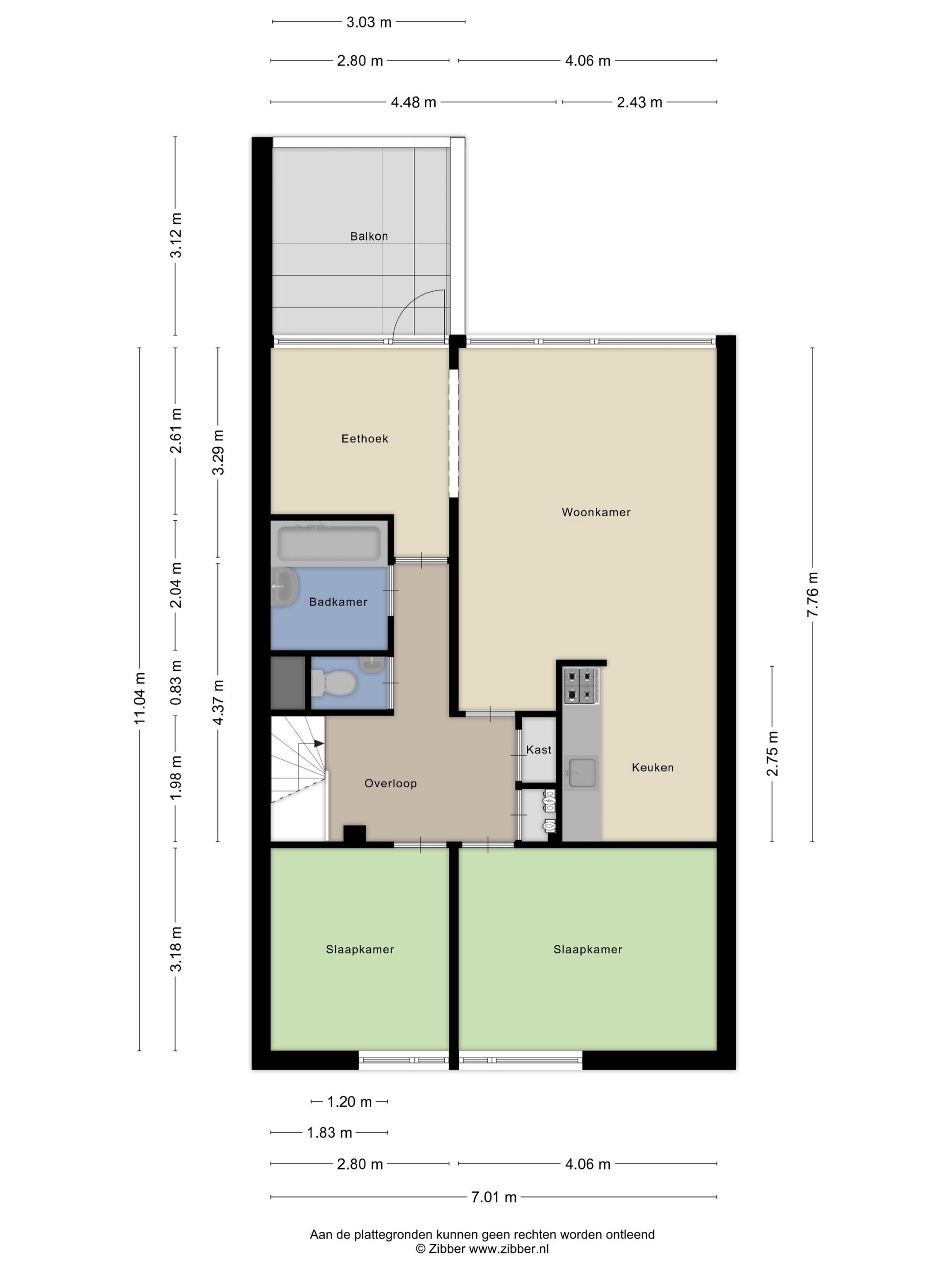 - De galerijflat heeft een woonoppervlakte van 80 m² en beschikt over 4 kamers, waarvan 3 slaapkamers;